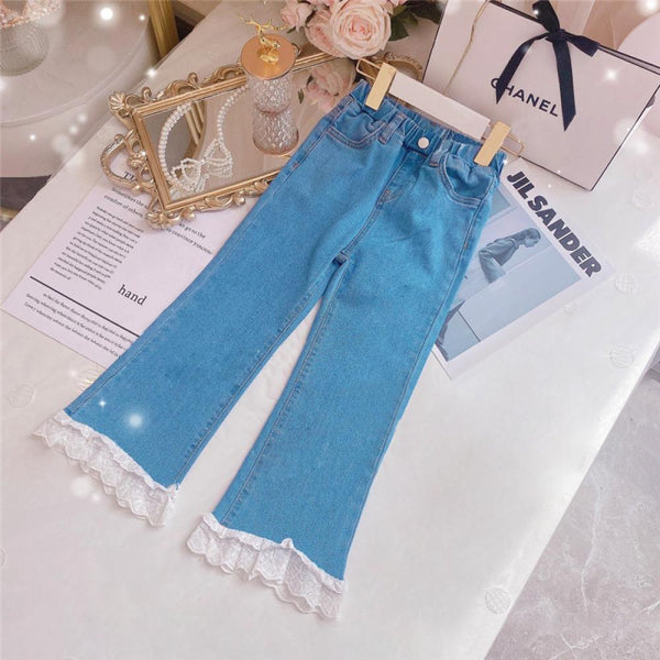 Toddler Girls Jeans Autumn Lace Hem Micro-Flare Denim Trousers Wholesale