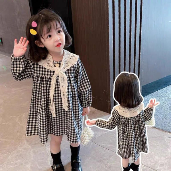 Toddler Girls Western Style Plaid Dress Spring Autumn Wholesale Girls Clothes