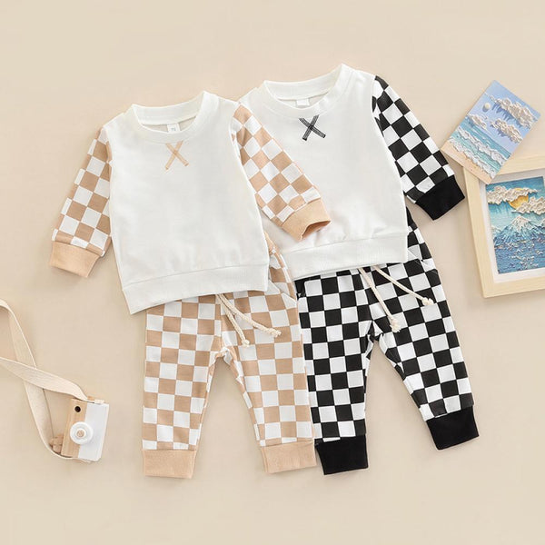 Unisex Baby Cotton Checkerboard Top + Pants Set Wholesale Baby Clothes