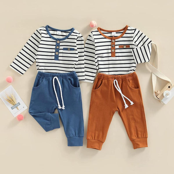 Autumn Unisex Baby Stripe Top + Pants Set Wholesale Baby Clothes