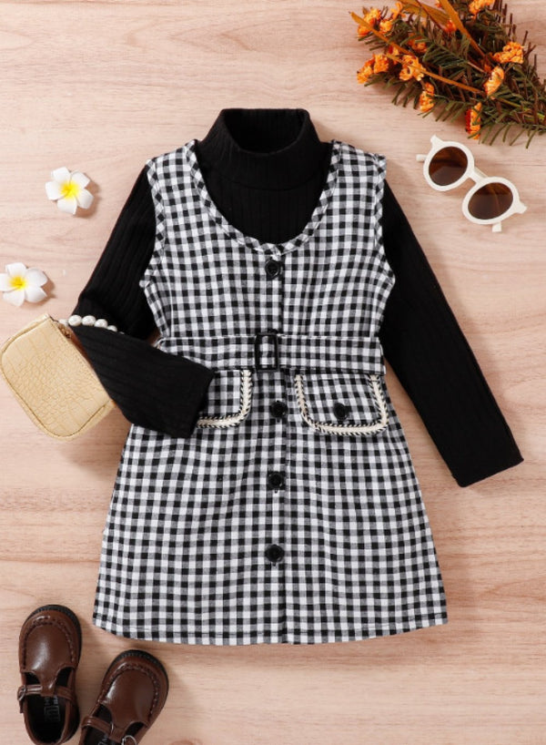 Little Girls Top + Plaid Skirt Two-piece Set Wholesale Girls Clothes