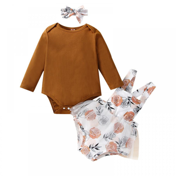 Baby Girls Solid Romper Suspenders Flower Shorts Headband Set Wholesale Baby Clothes Usa