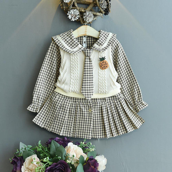 Girls Spring Autumn Plaid Dress With Vest School Set Baby Girl Boutique Clothing Wholesale