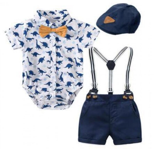 Baby Boys Summer Dinosaur Printed Romper and Suspenders Shorts Set Baby Clothing In Bulk