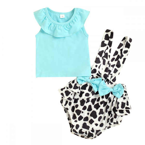 Newborn Baby Girls Short Set Lake Blue Top + Bow Strap Cow Printed PP Pants Buy Baby Clothes Wholesale