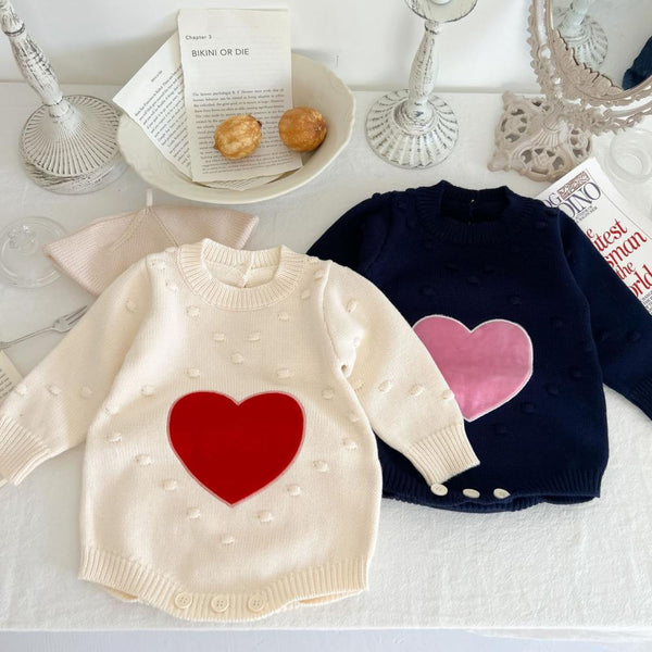 Newborn Baby Girls Autumn Heart Knitted Romper Boutique Baby Clothes Wholesale