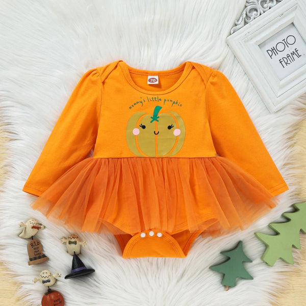 Autumn/Winter Halloween Baby Bodysuit Pumpkin Print Long Sleeve Romper Mesh Romper Dress Wholesale
