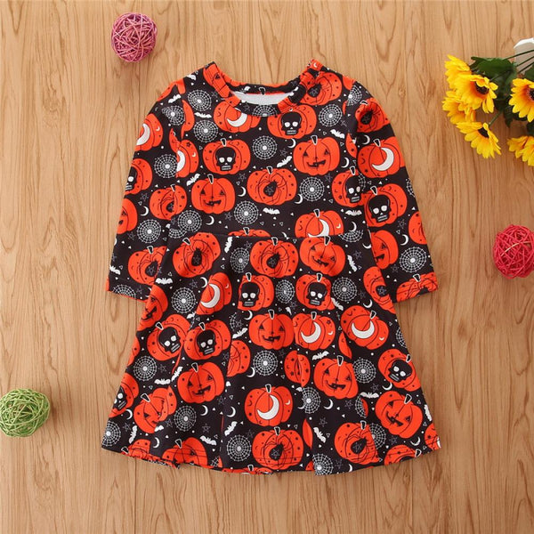 Autumn Dress Toddler Girls Halloween Pumpkin Print Dress Kids Skirt Wholesale