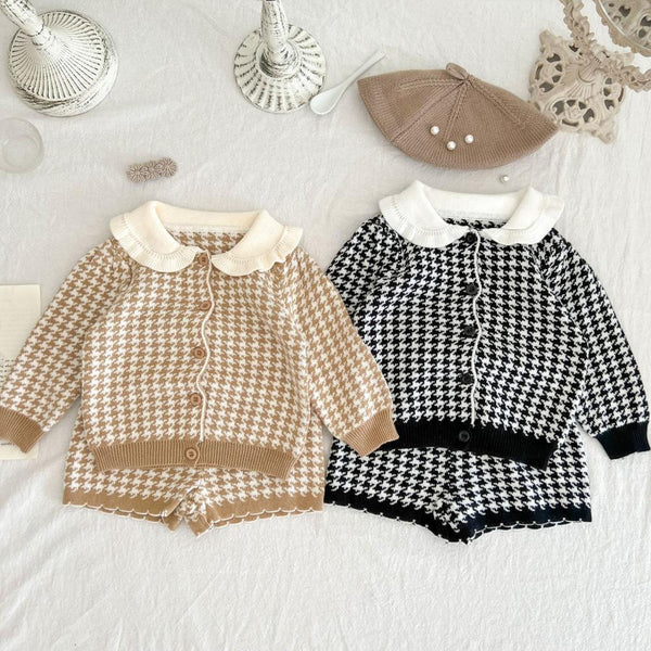 Baby Autumn Baby Classic Black and White Check Knit Cardigan Jacket Cotton Sweater Wholesale