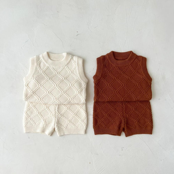 Baby Autumn Knitted Cotton Yarn Vest + Pants Set Baby Sweater Wholesale