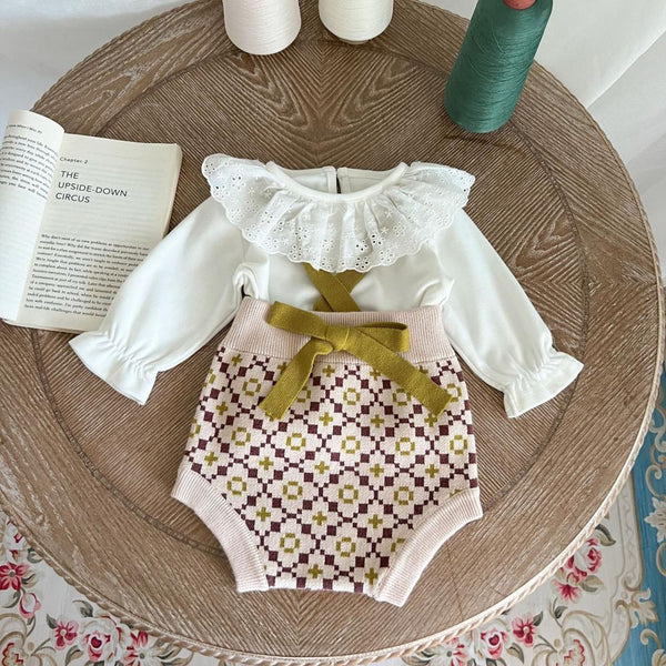 Unisex Baby Plaid Jacquard Overalls Knitted Jumpsuit Wholesale Baby Clothes