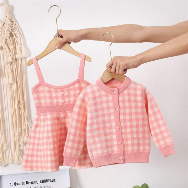 Girl Cute Autumn and Winter Sweater Cardigan Skirt Two-piece Set Wholesale Girls Clothes