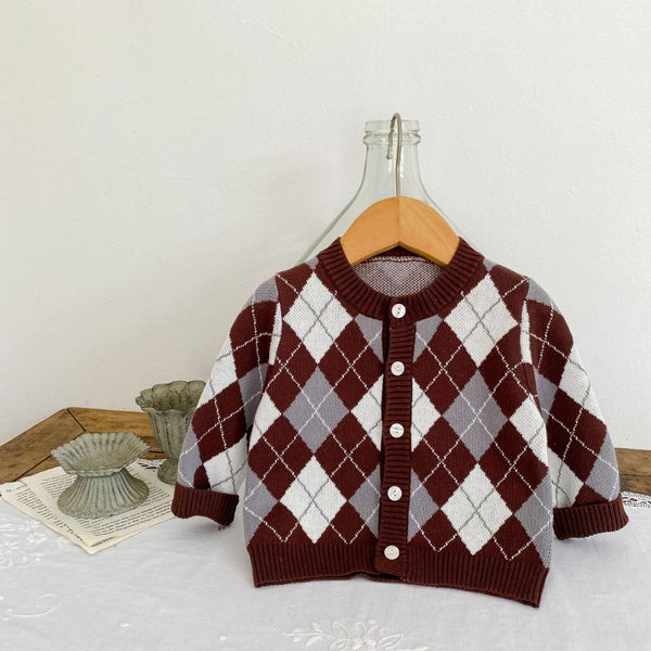 Unisex Autumn Winter Sweater Baby Plaid Knitted Cardigan Coat Wholesale