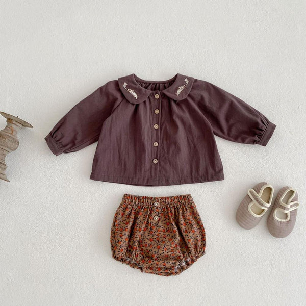 Autumn Baby Girl Cotton Rabbit Embroidered Lapel Top + Floral Bread Pants Set Wholesale Girls Clothes