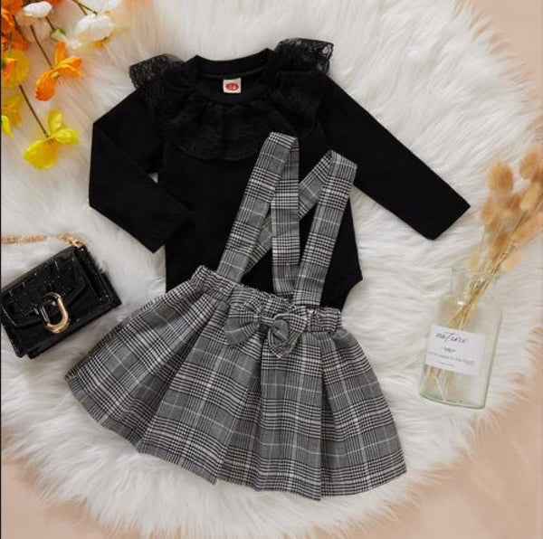 Autumn and Winter Girls Lace Collar Plaid Skirt Two Piece Set Wholesale Baby Girls Clothes
