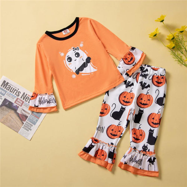 Halloween Girls Clothes Long-sleeved T-shirt + Flared Trousers Set Wholesale Girls Clothes