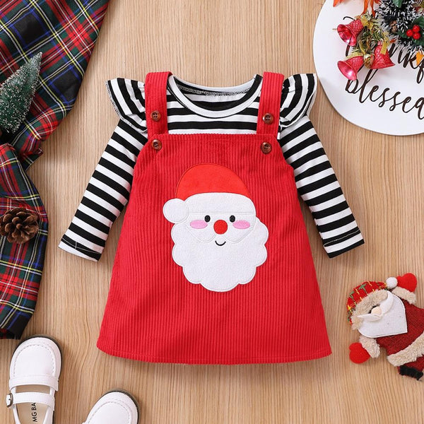 Girls Christmas Striped Baby Autumn Corduroy Strap Skirt Embroidery Suit Wholesale Baby Clothes