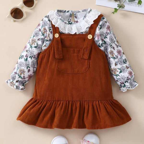 Autumn and Winter Long-sleeved Floral Top + Corduroy Ruffle Skirt Wholesale Baby Girls Clothes