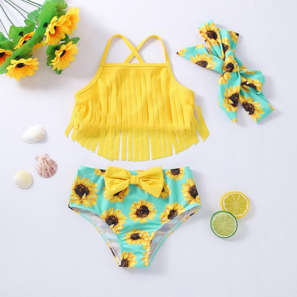 Yellow Sling Multicolor Sunflower Print Children's Swimsuit Wholesale