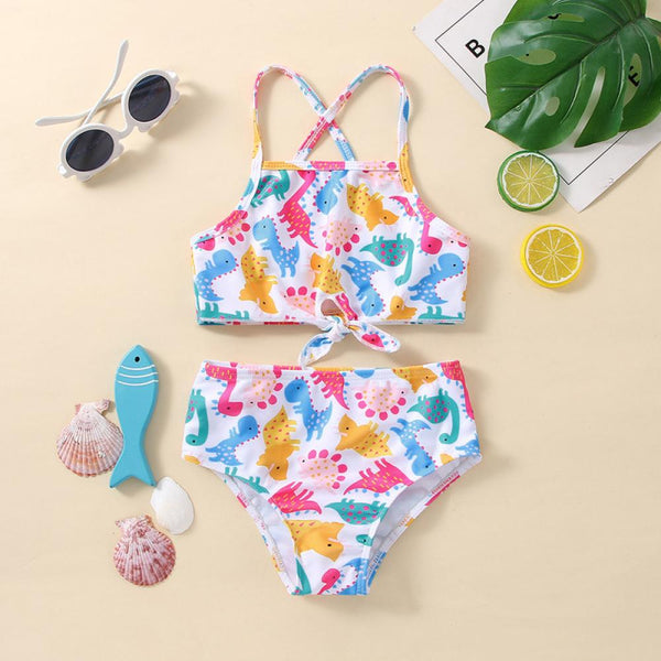 Multicolor Dinosaur Print Suspenders Children's Split Swimsuit Wholesale