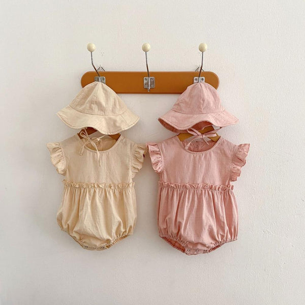 INS summer baby solid color fly sleeved jumpsuit+sun hat Baby Wholesale Clothes