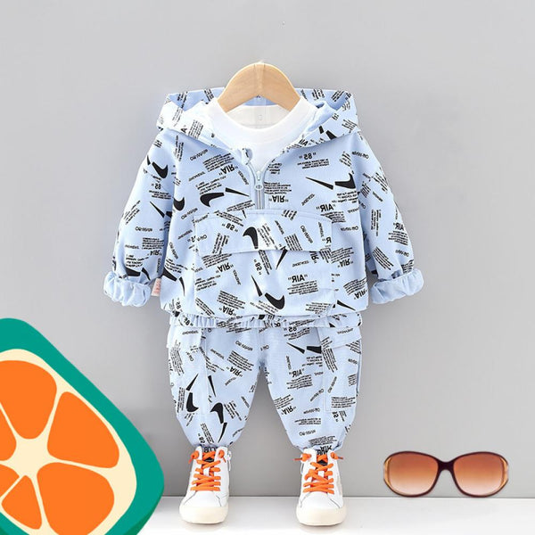 Three-piece Set Boys Spring And Autumn Western Style Cartoon Hooded Clothes Wholesale Baby Boy Clothes