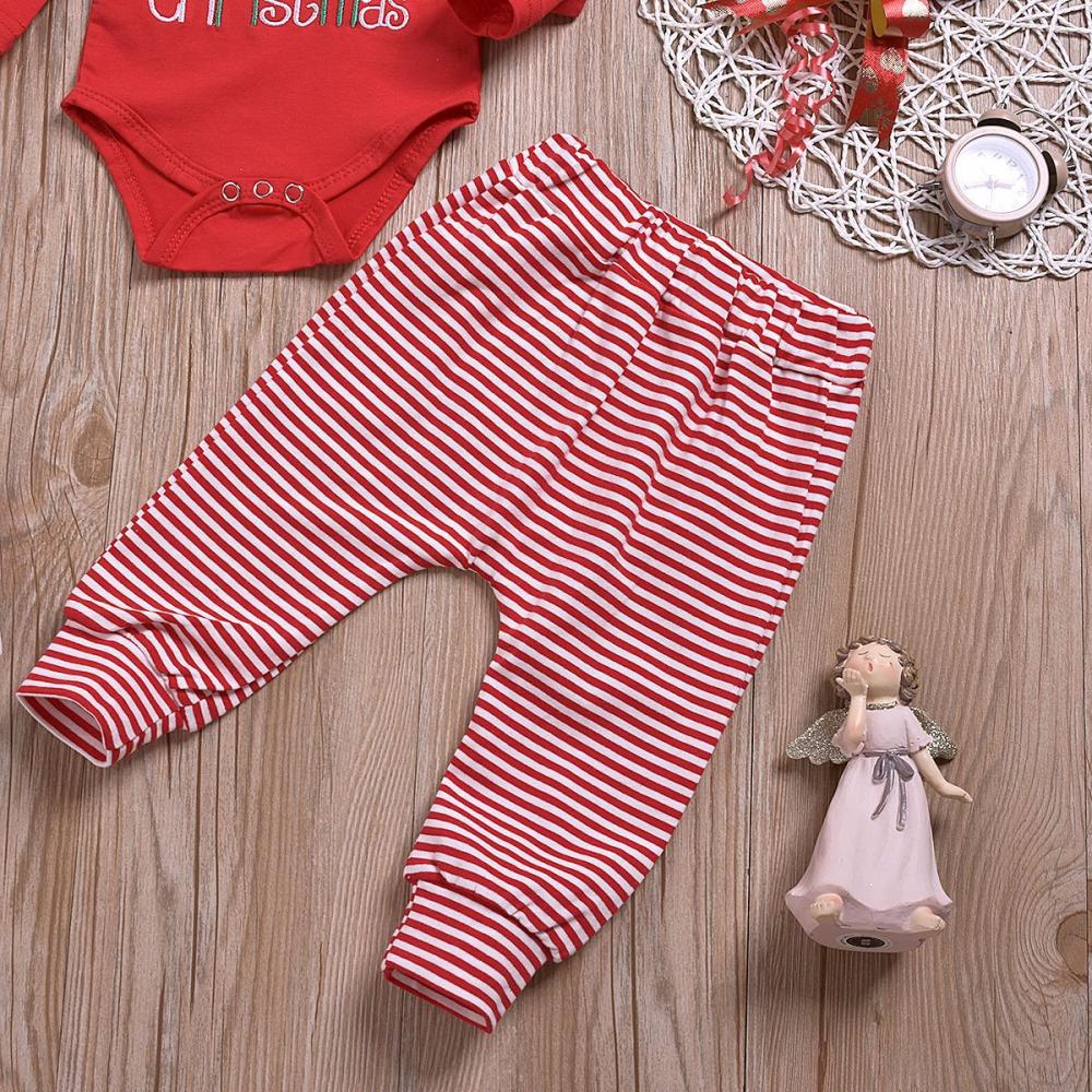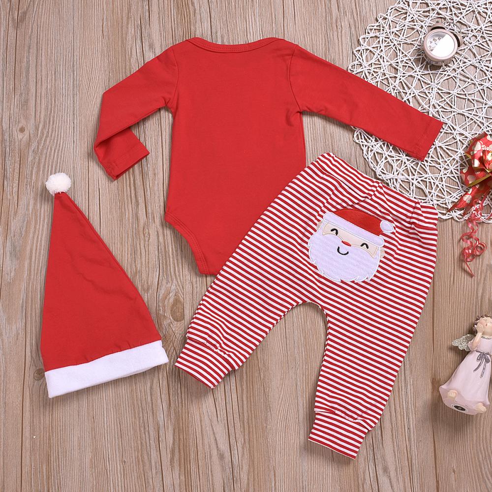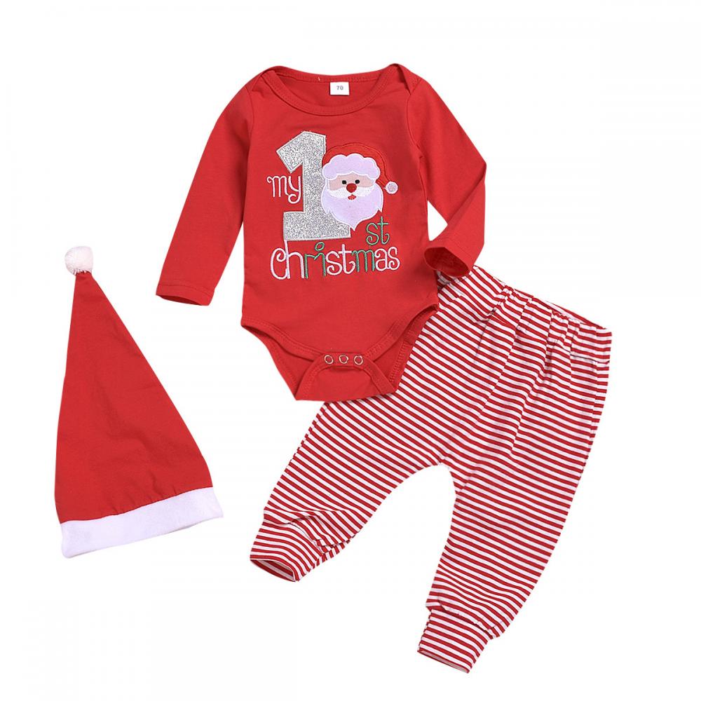 Autumn And Winter Baby Christmas Long-sleeved Romper Striped Trousers Three-piece Set Wholesale Baby Clothes