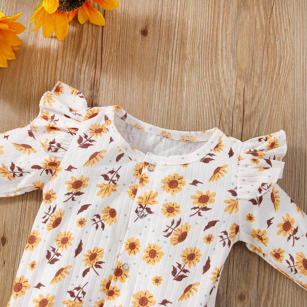 Autumn And Winter Girl Yellow Floral Flying Sleeve Jumpsuit Baby Girl Boutique Clothes In Bulk