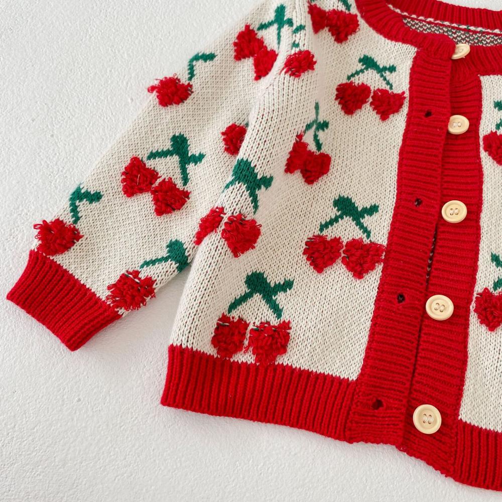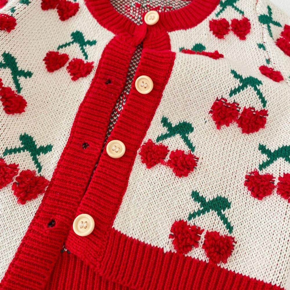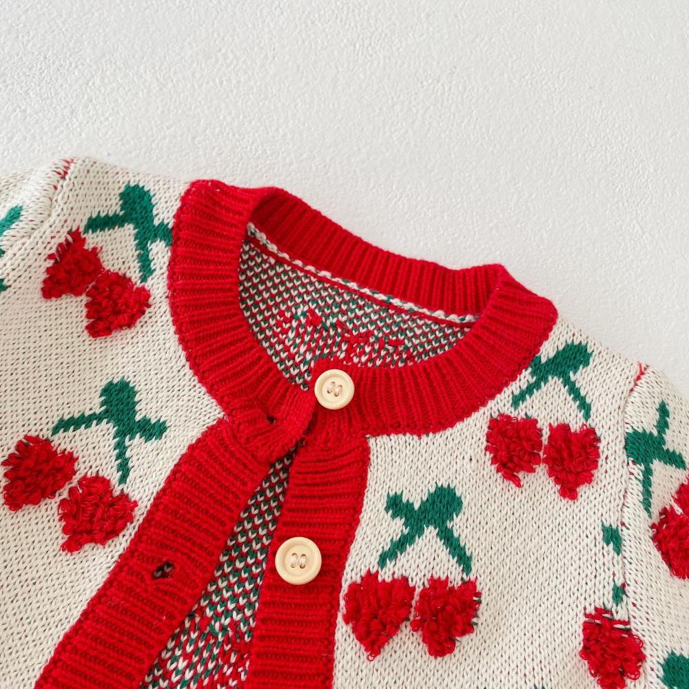 Autumn and Winter Suit 0-2T Baby Girl Cherry Embroidered Top + Coat Wholesale Girls Clothes