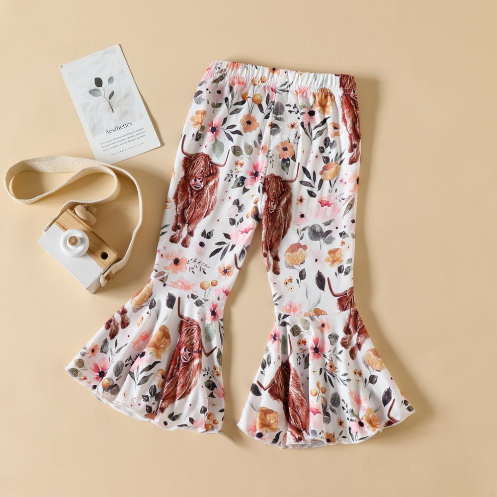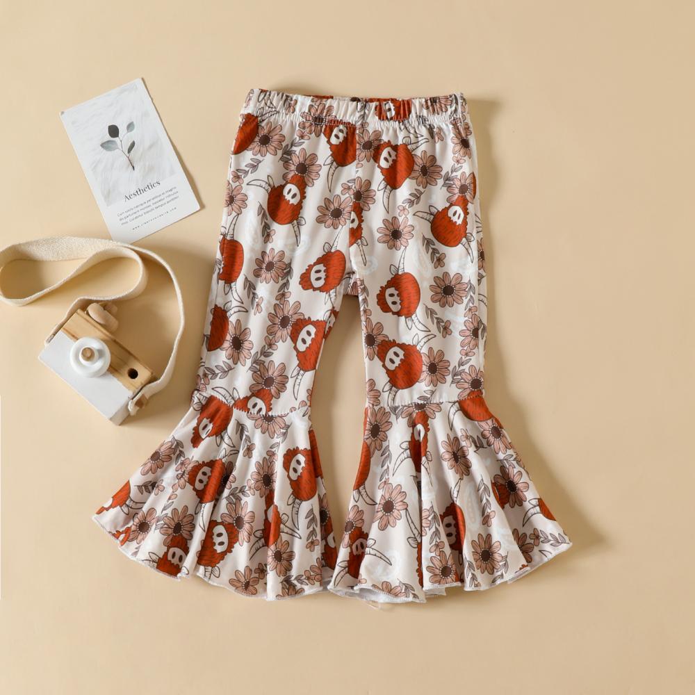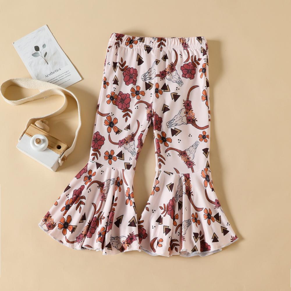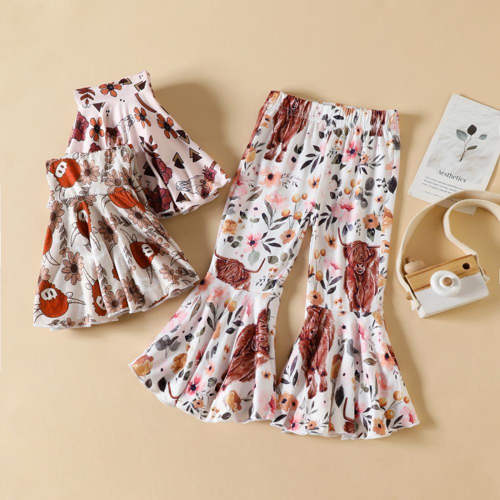 Autumn Baby Girl Flower Animal Print Flared Pants Wholesale Girls Clothes
