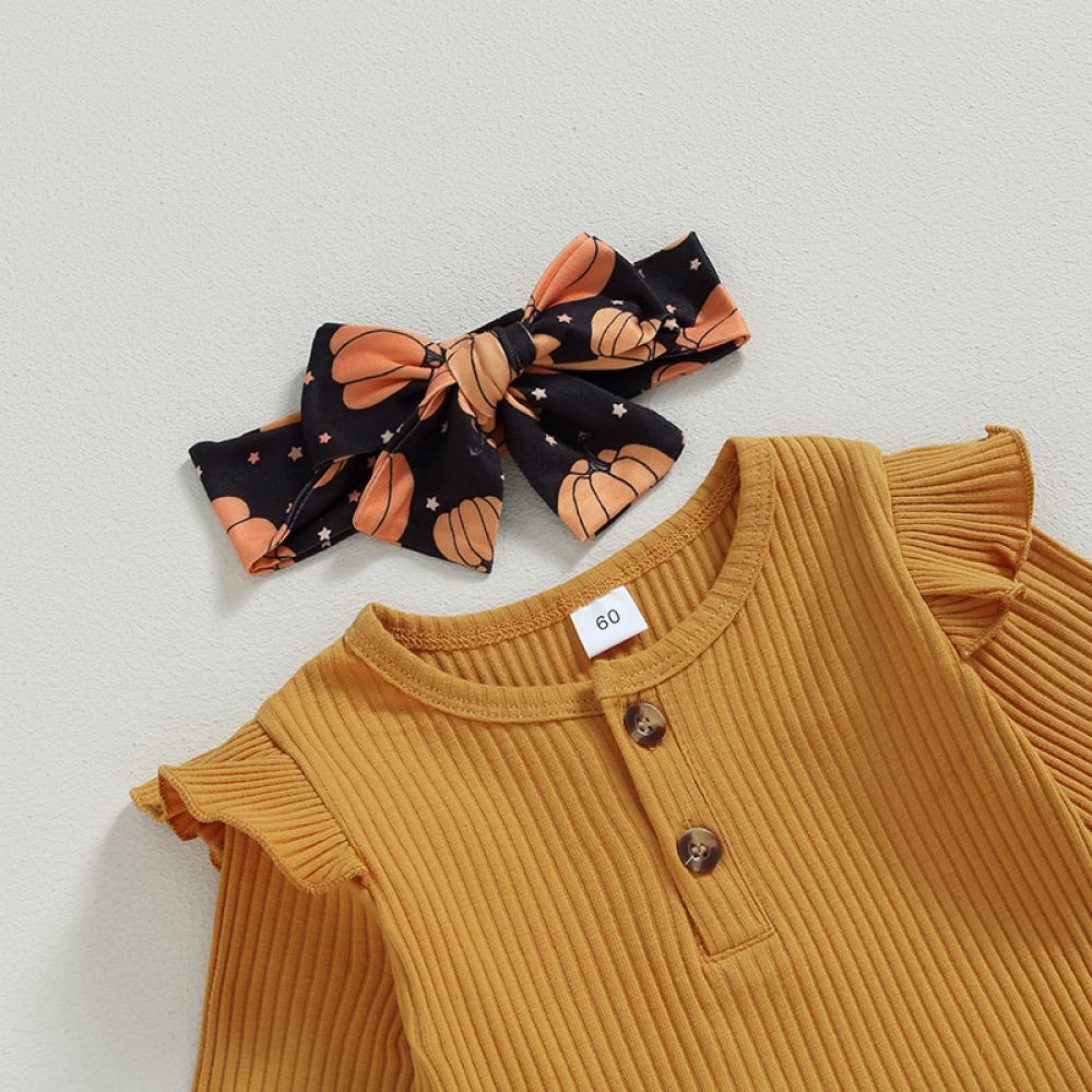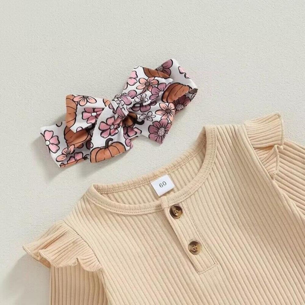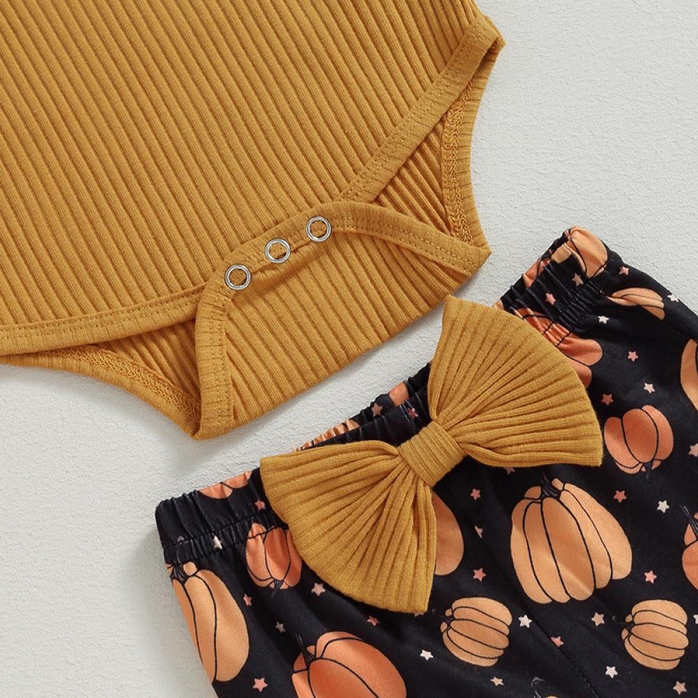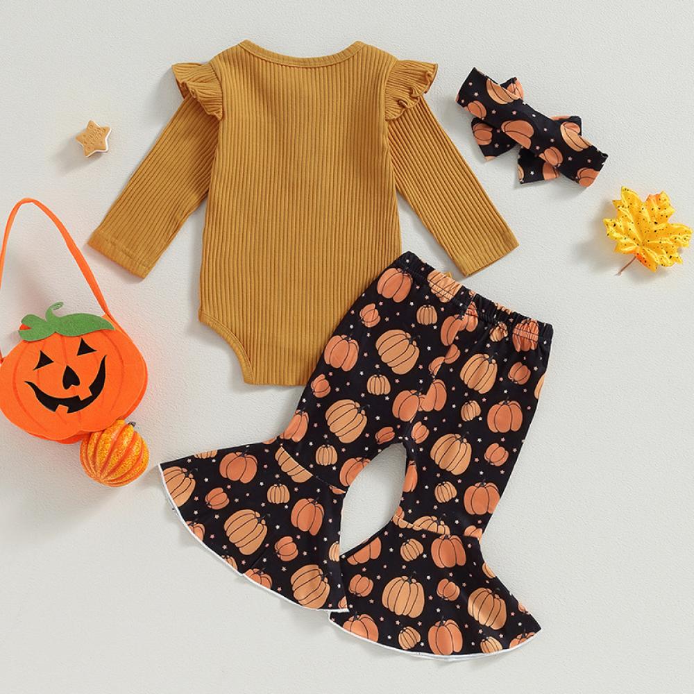 Autumn Baby Girl Halloween Pumpkin Print Flare Pants Set Cheap Baby Clothes Wholesale