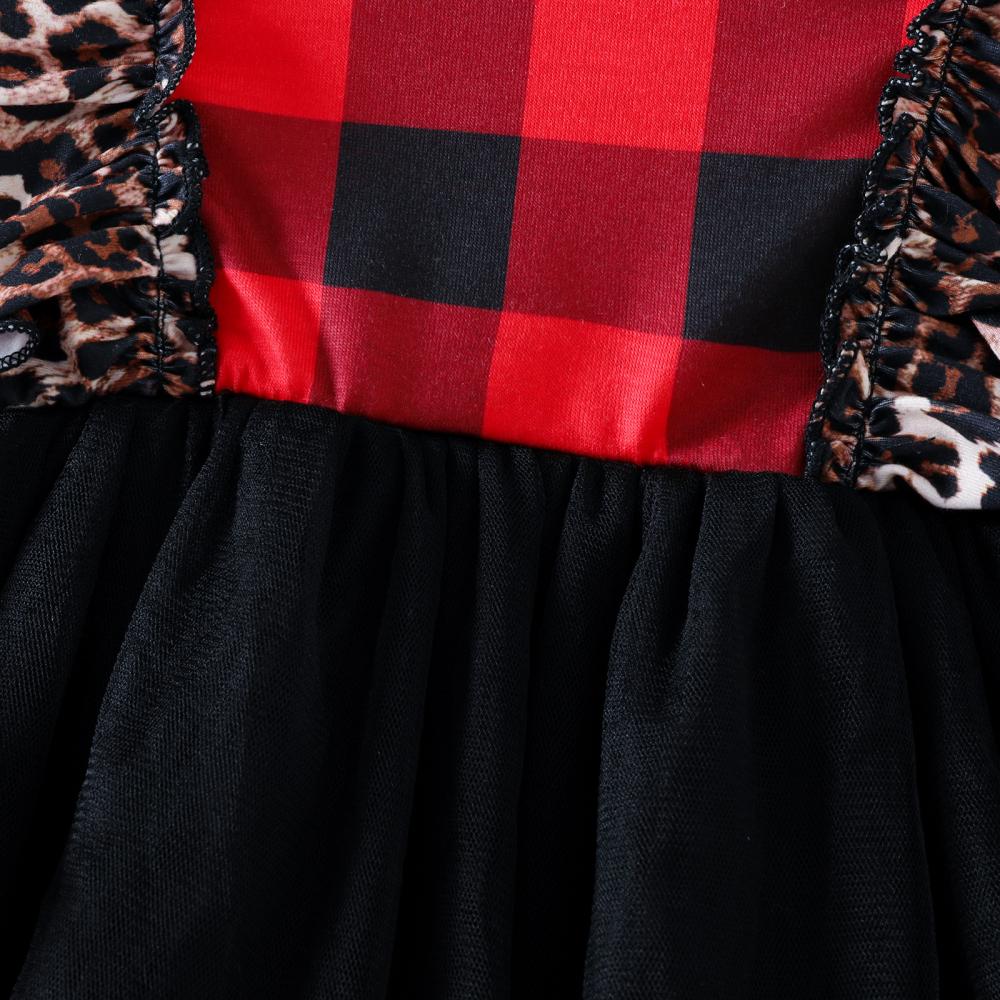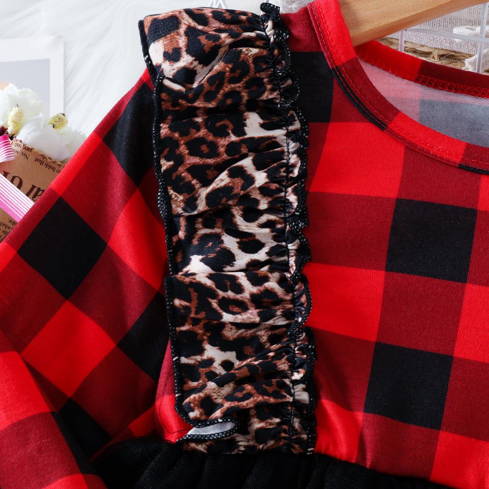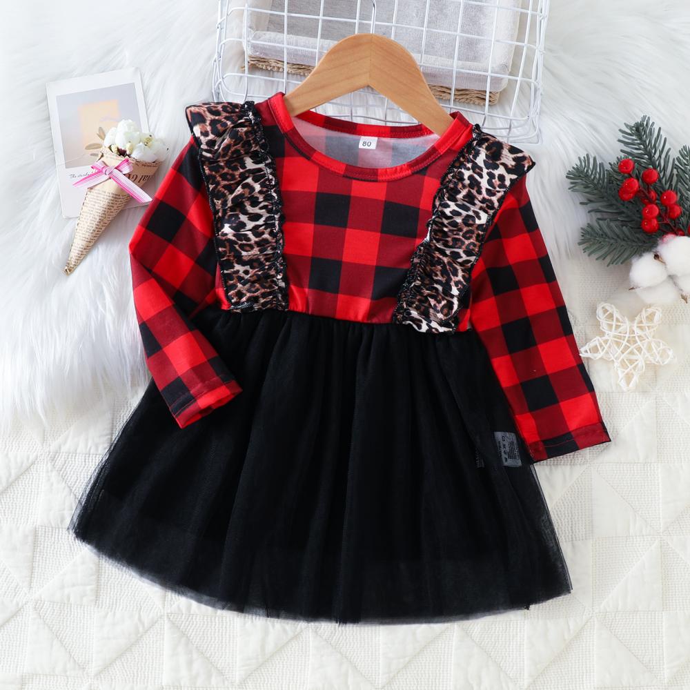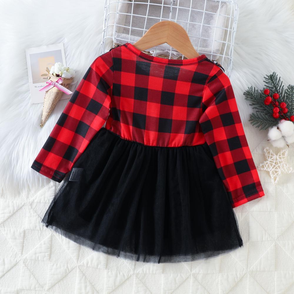 Autumn Christmas Plaid Panel Mesh Dress Wholesale Girls Dress