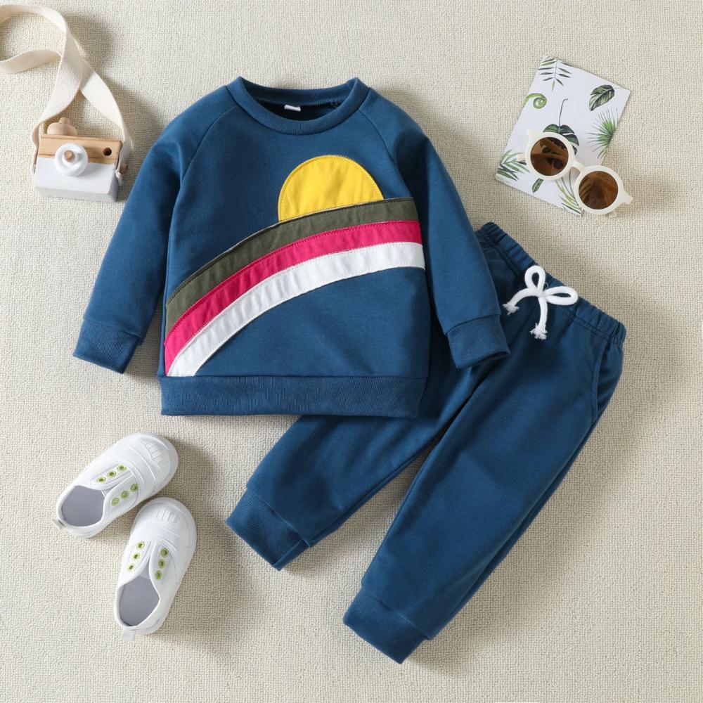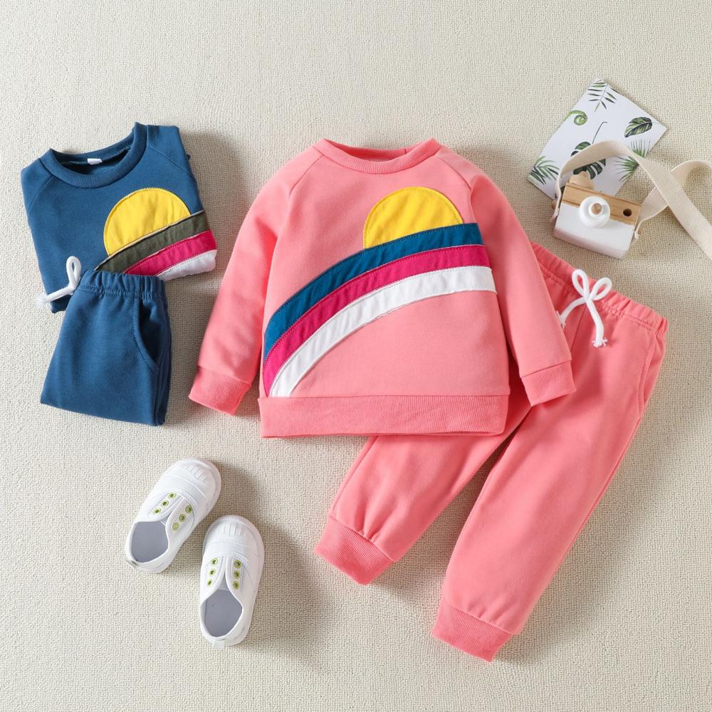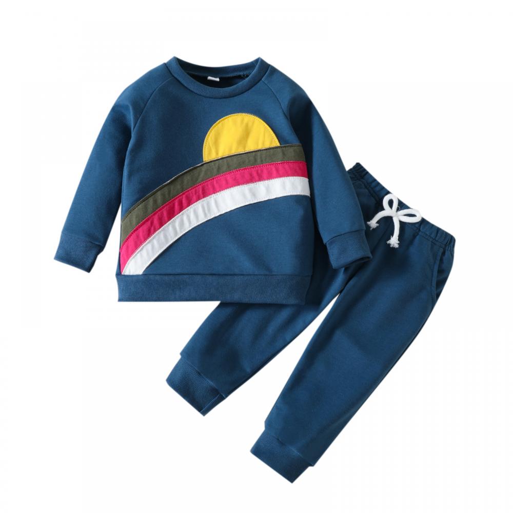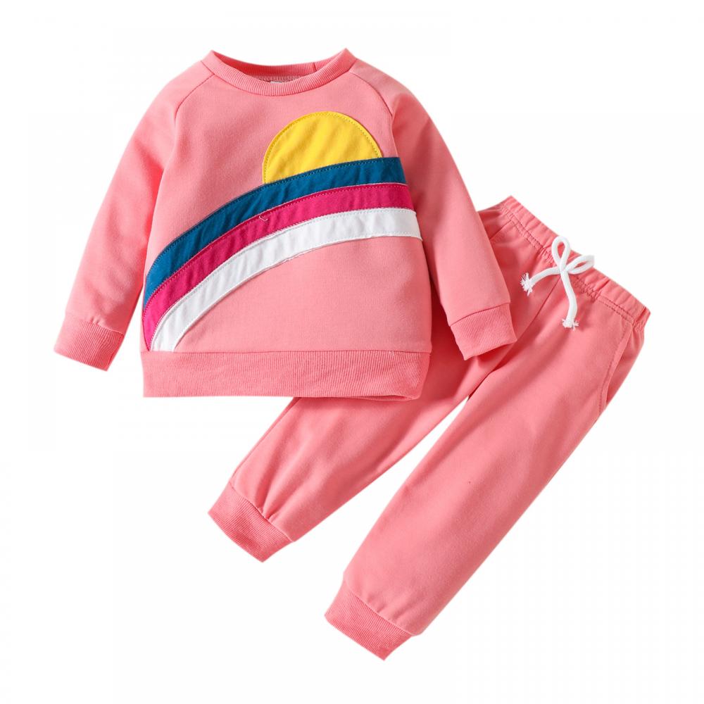 Autumn Rainbow Embroidery Baby Children Suit Wholesale