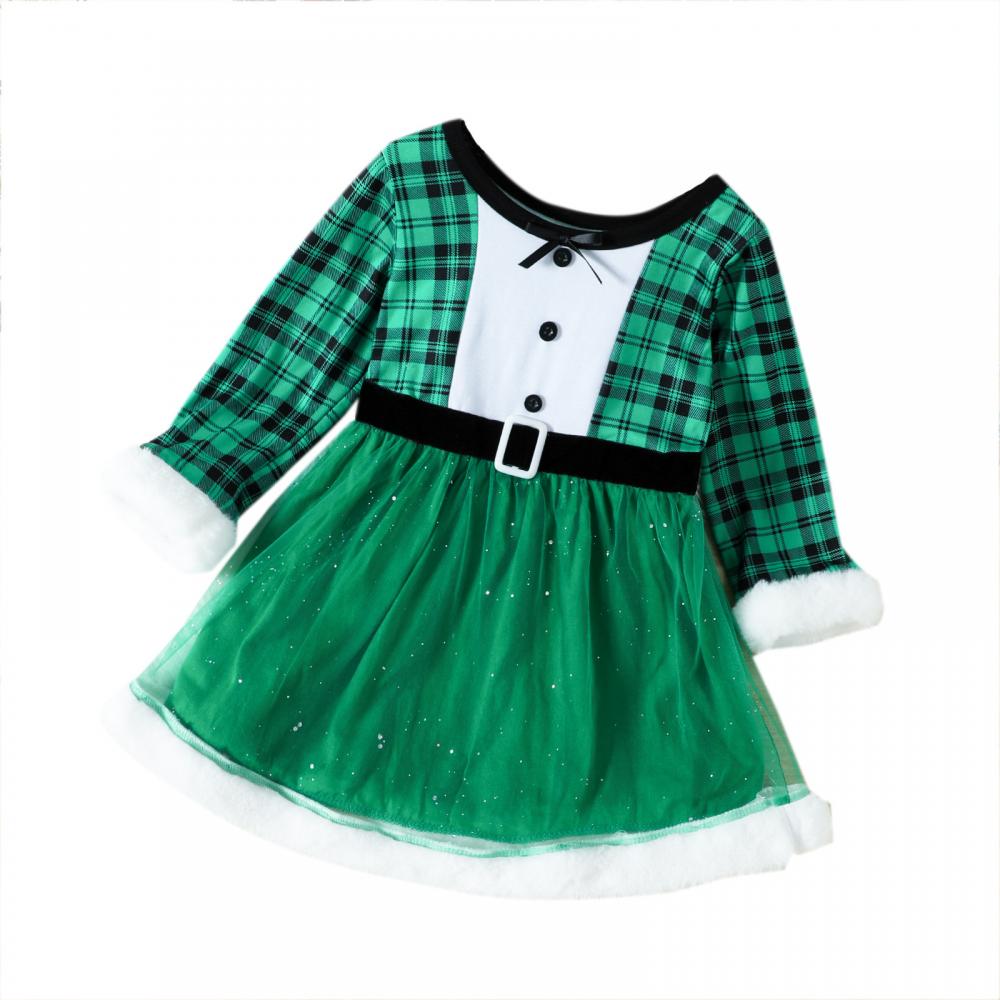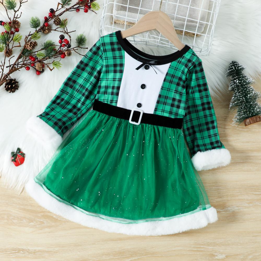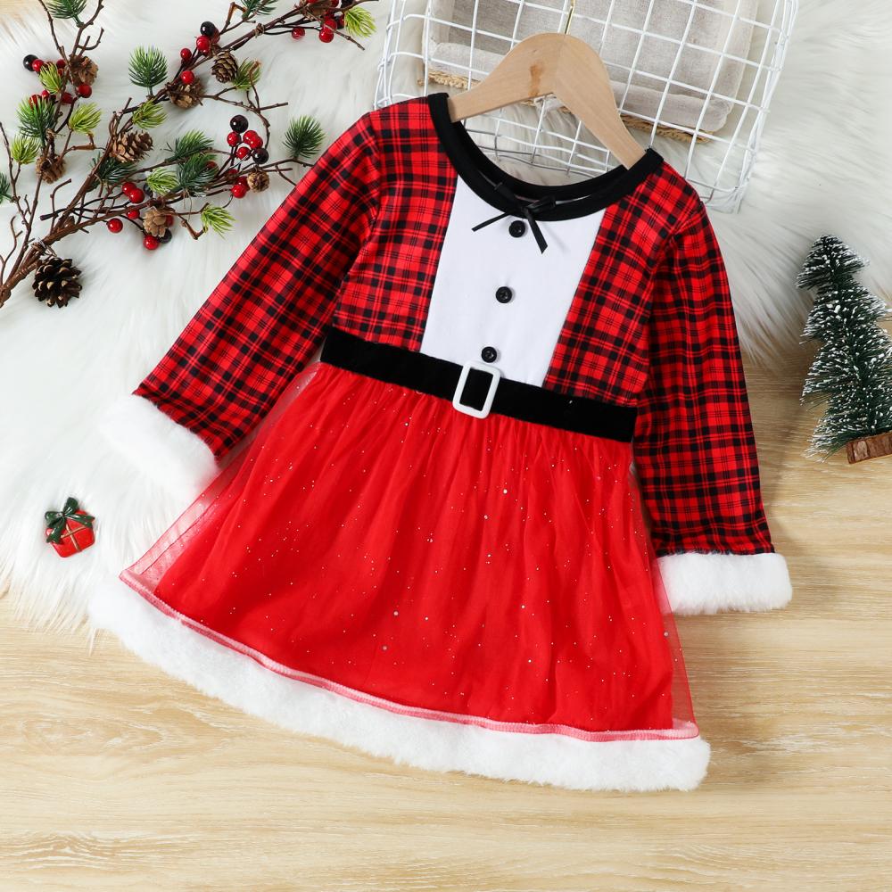 Autumn/Winter Toddler Girls Christmas Plaid Mesh Dress Wholesale Girls Dress