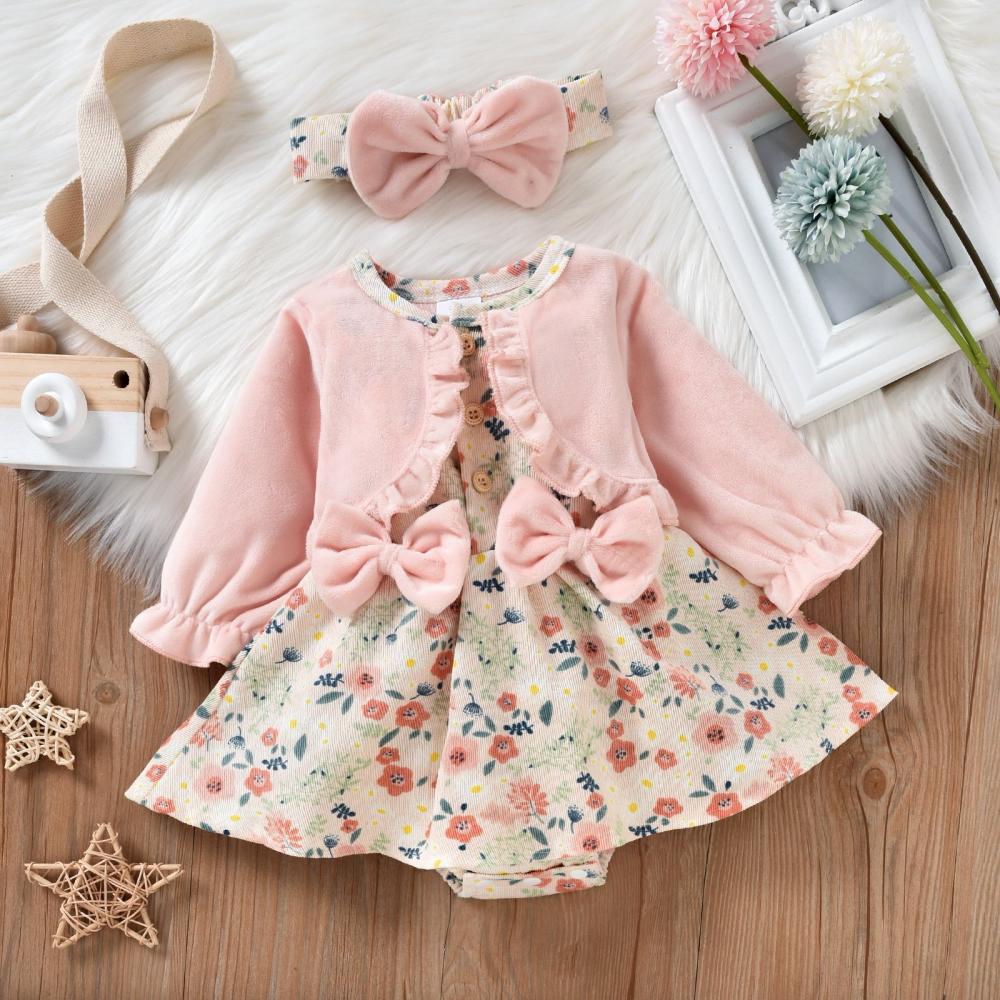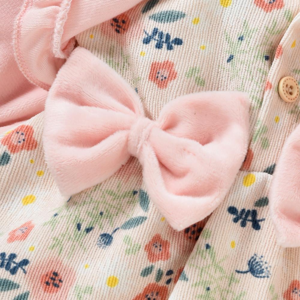 Baby Girl Cotton Long Sleeve Bow Print Dress Romper Two Piece Set Wholesale Girls Clothes