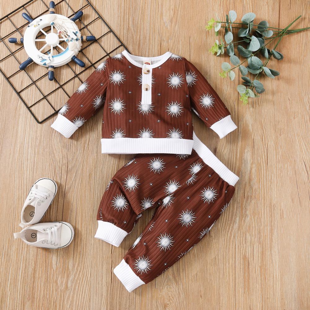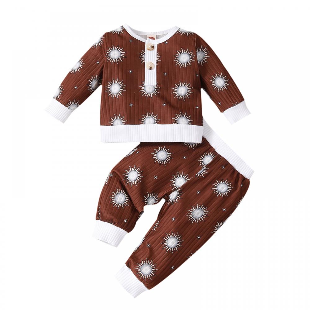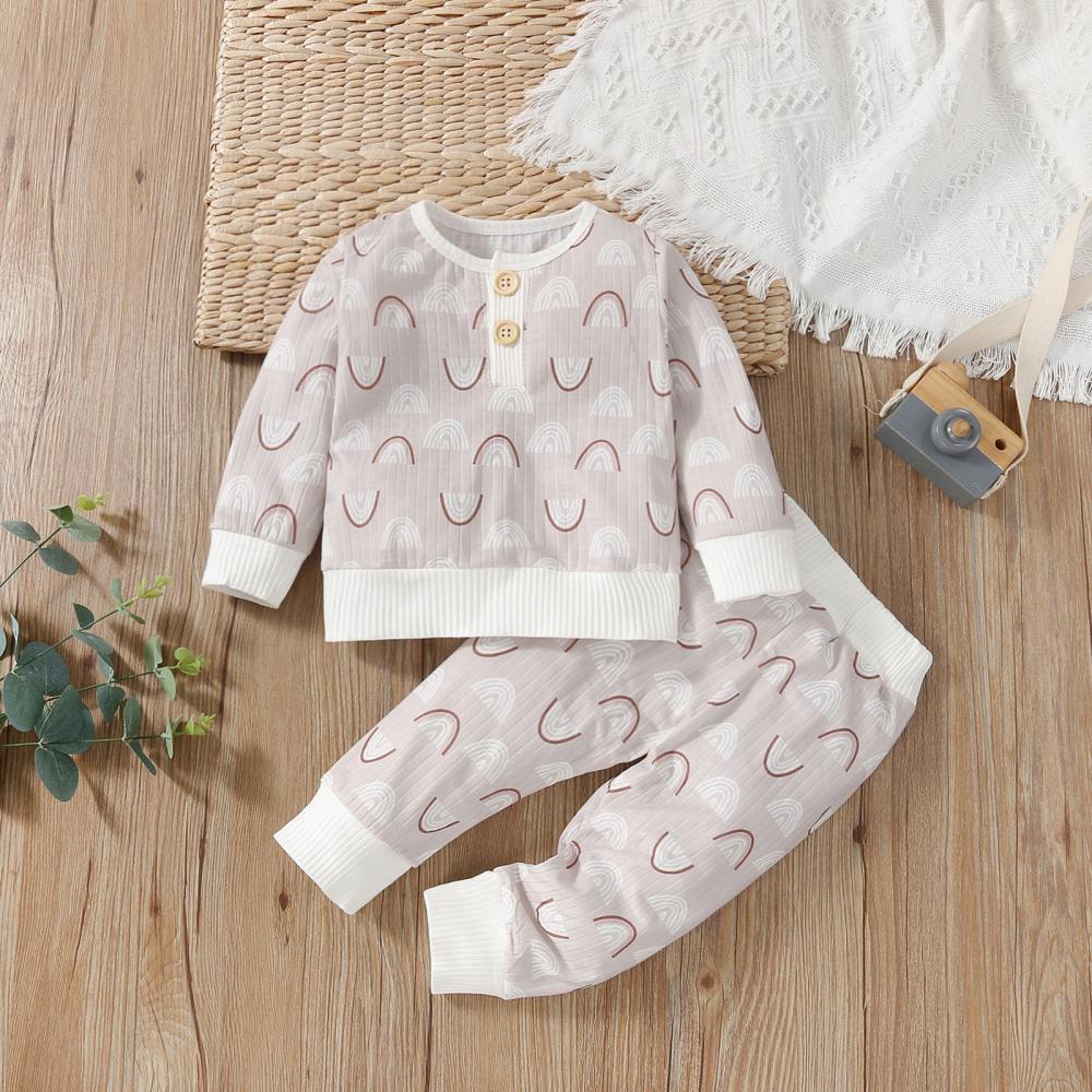 Baby Toddler Unisex Autumn Sun Rainbow Top and Pants Set Baby Clothing In Bulk