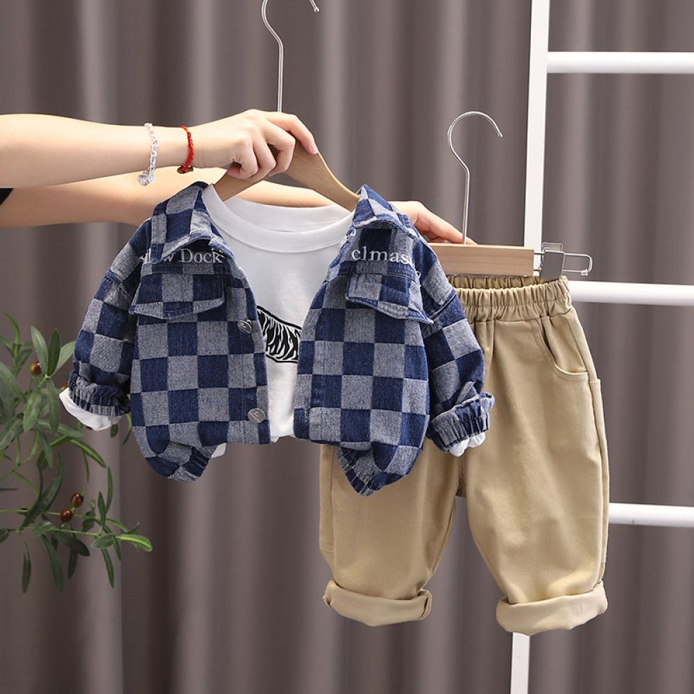 Boys Autumn 3PCS Set Coat Top and Pants Set Wholesale Boy Clothes