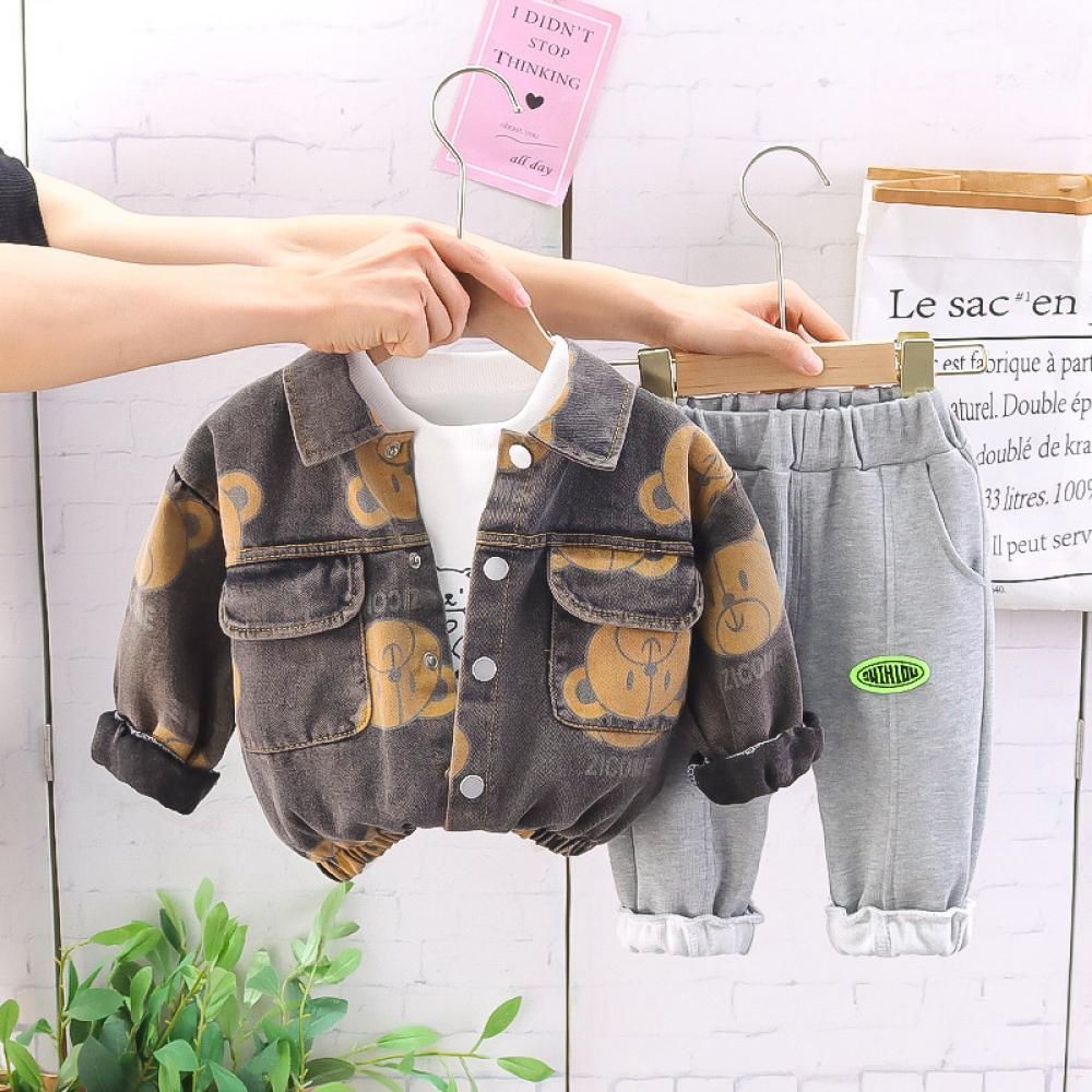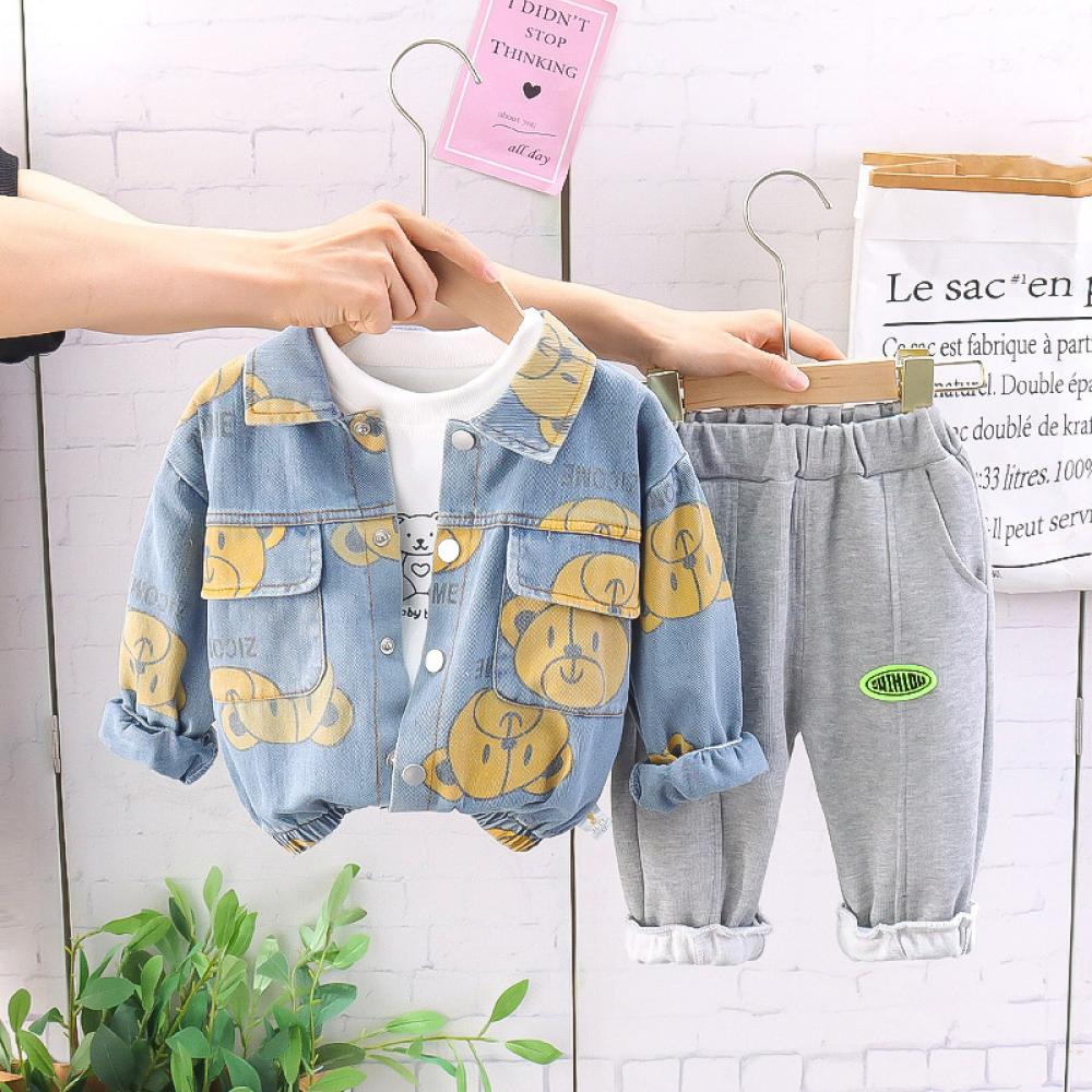 Boys' Autumn Spring and Autumn Denim Jacket Casual Three Piece Set Wholesale Boys Clothes