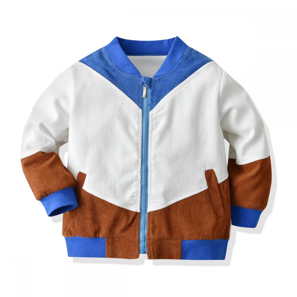 Boy's Corduroy Patchwork V-neck Jacket Spring Aurumn Zipper Coat Boy Clothes Wholesale