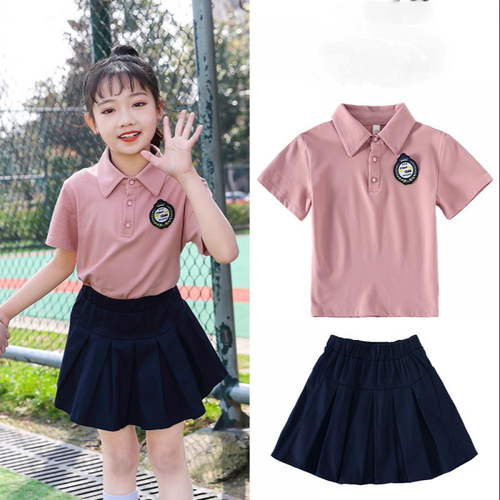 Boys Girls Lapel Top and Shorts Set Skirt School Uniform Wholesale Kidswear