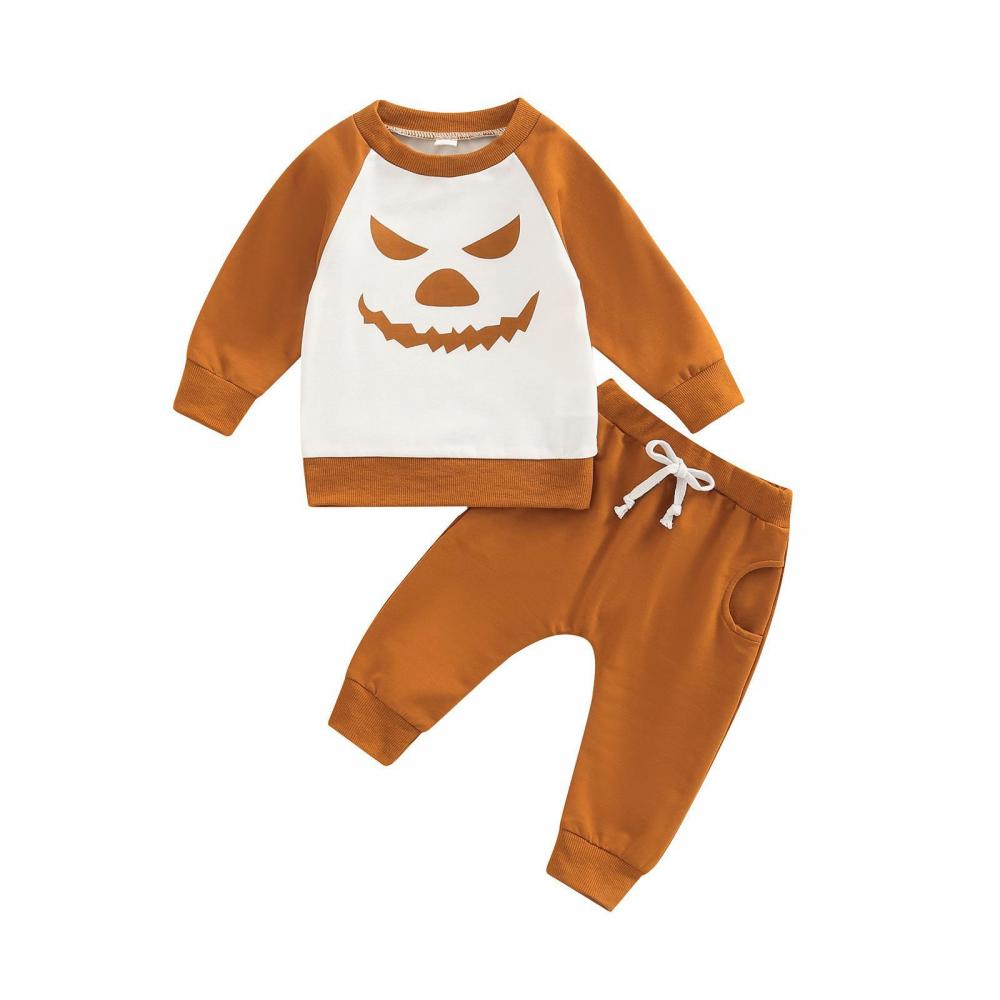 Boys Infant Set Cartoon Printing Halloween Long Sleeve Sweater Boys Set Wholesale
