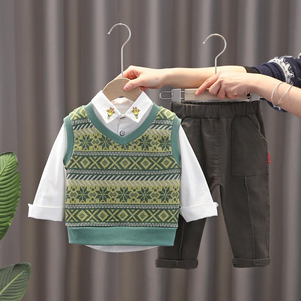 Boys Spring and Autumn T-shirt Vest And Pants Set Boys Wholesale Clothes