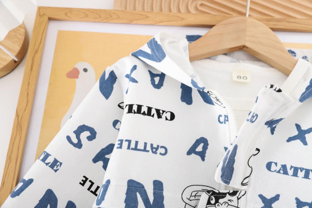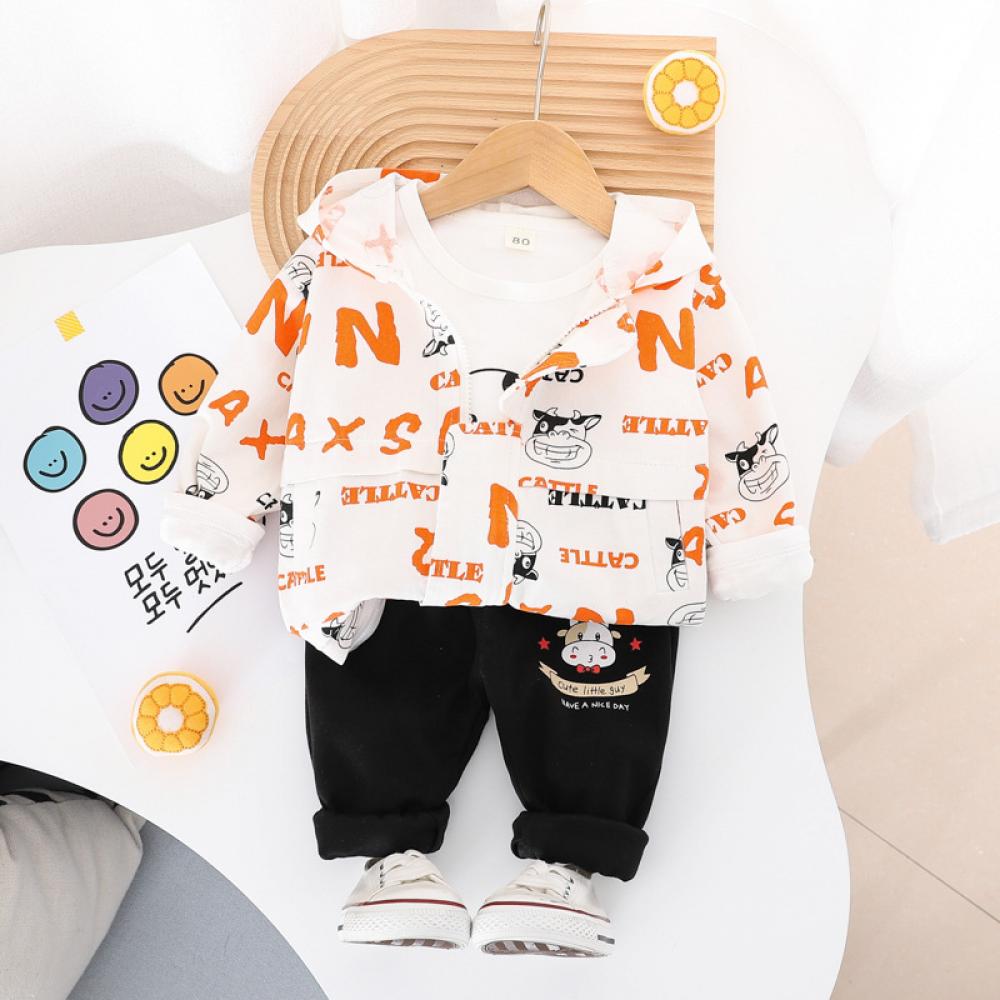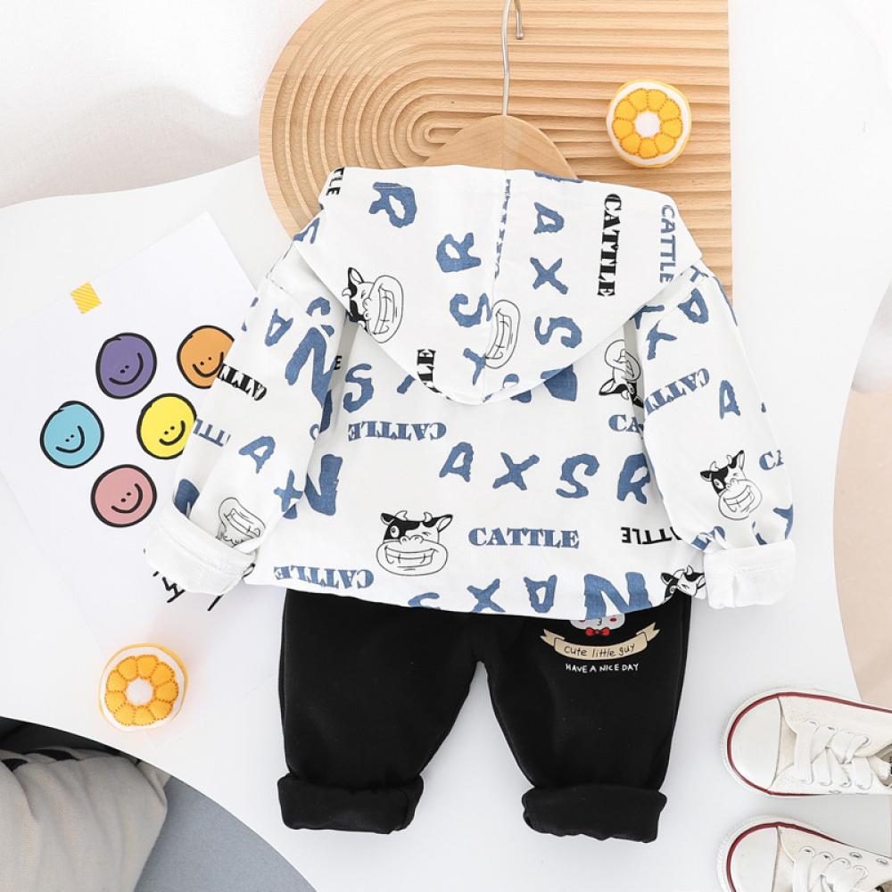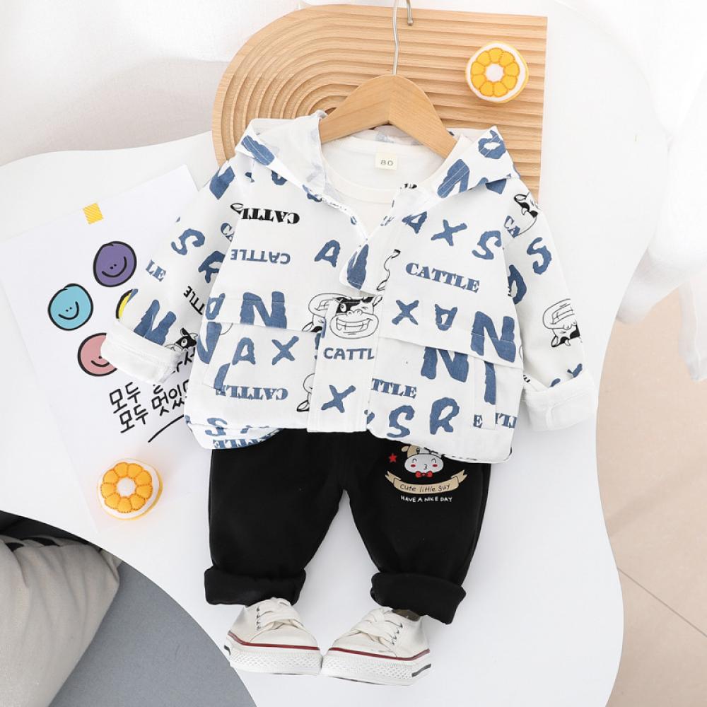 Boys Western Style Cartoon Hooded Suit Spring and Autumn Three Piece Set Wholesale Baby Boys Clothes