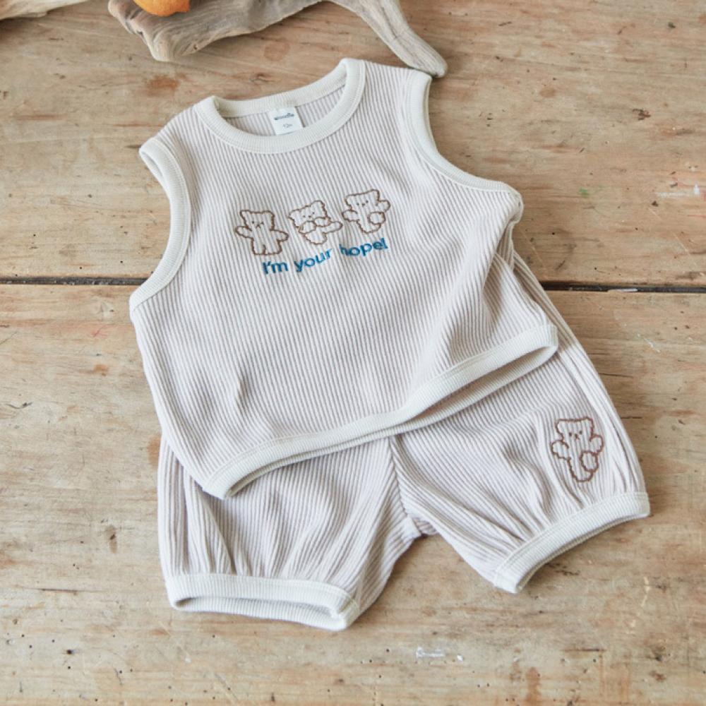 Children's Vest Set Summer Waffle Print Two-piece Set Baby Boy Clothes In Bulk