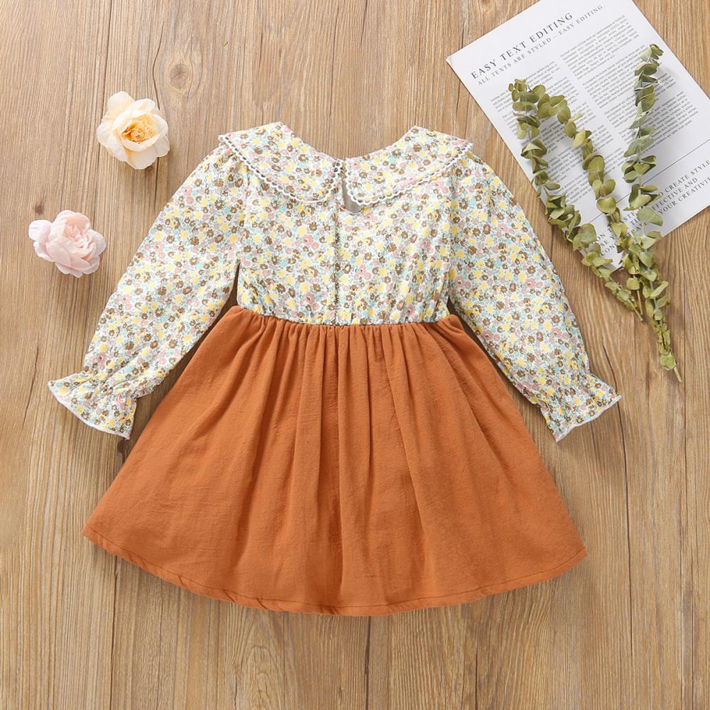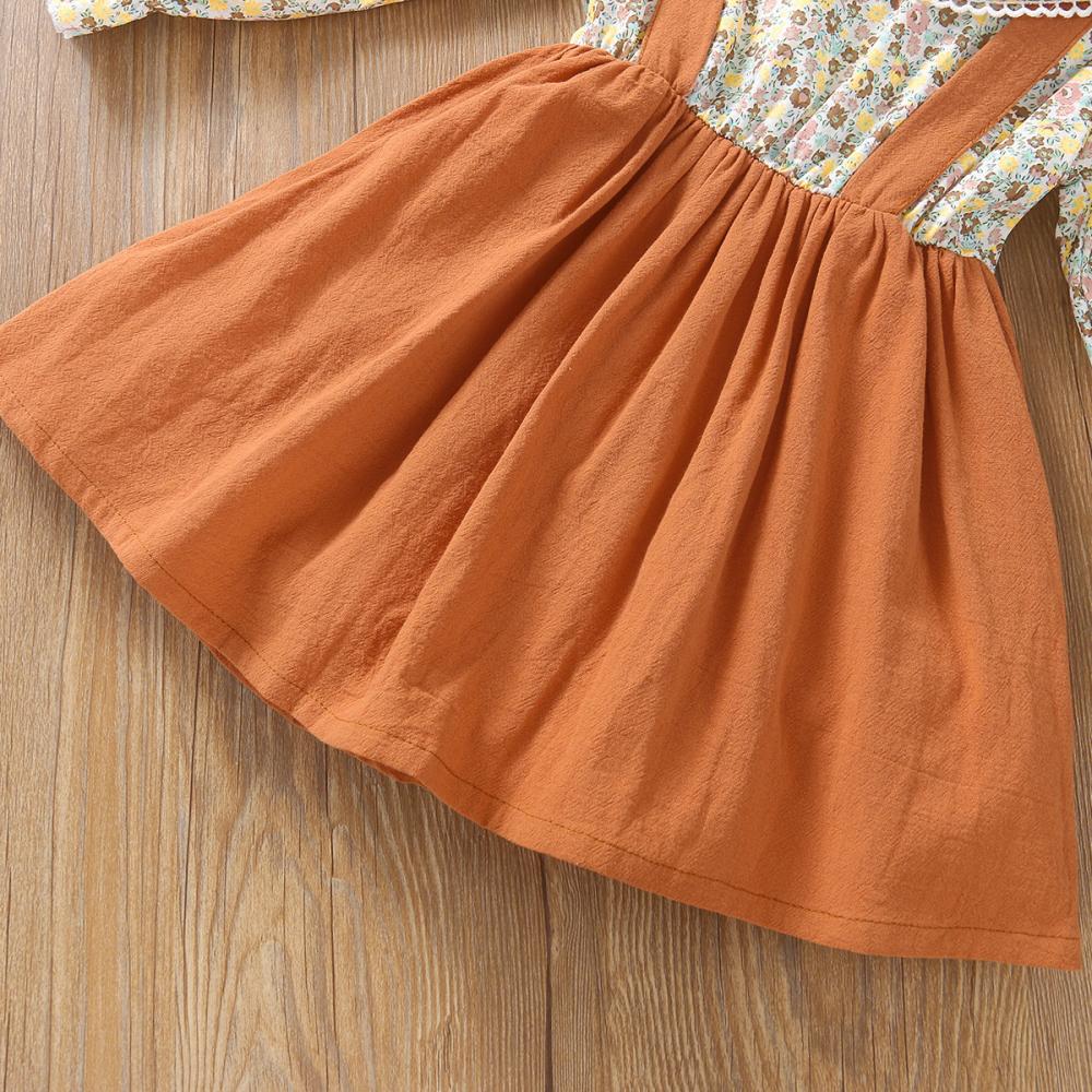 Girls Long Sleeve Dress Small Floral Fake Strap Princess Dress Wholesale Girls Clothes