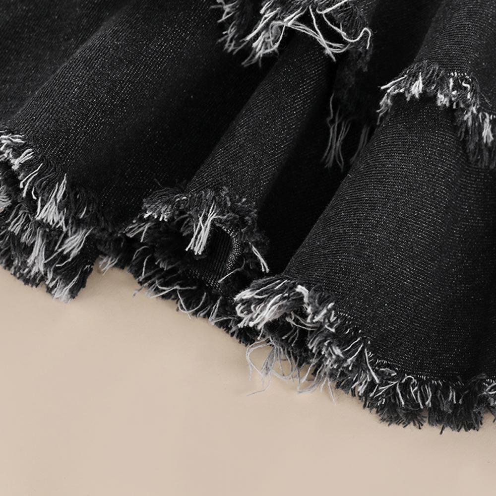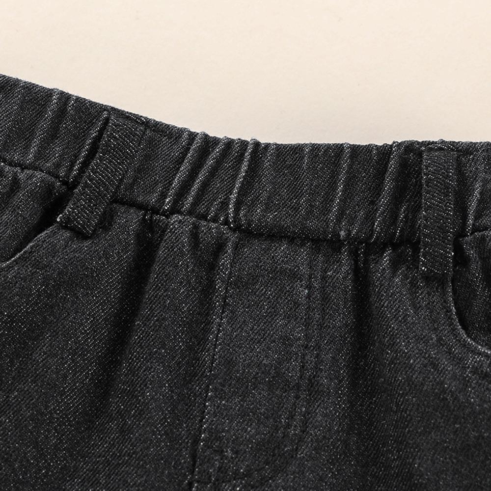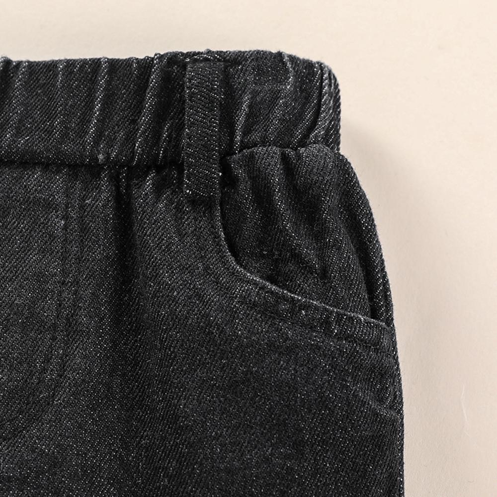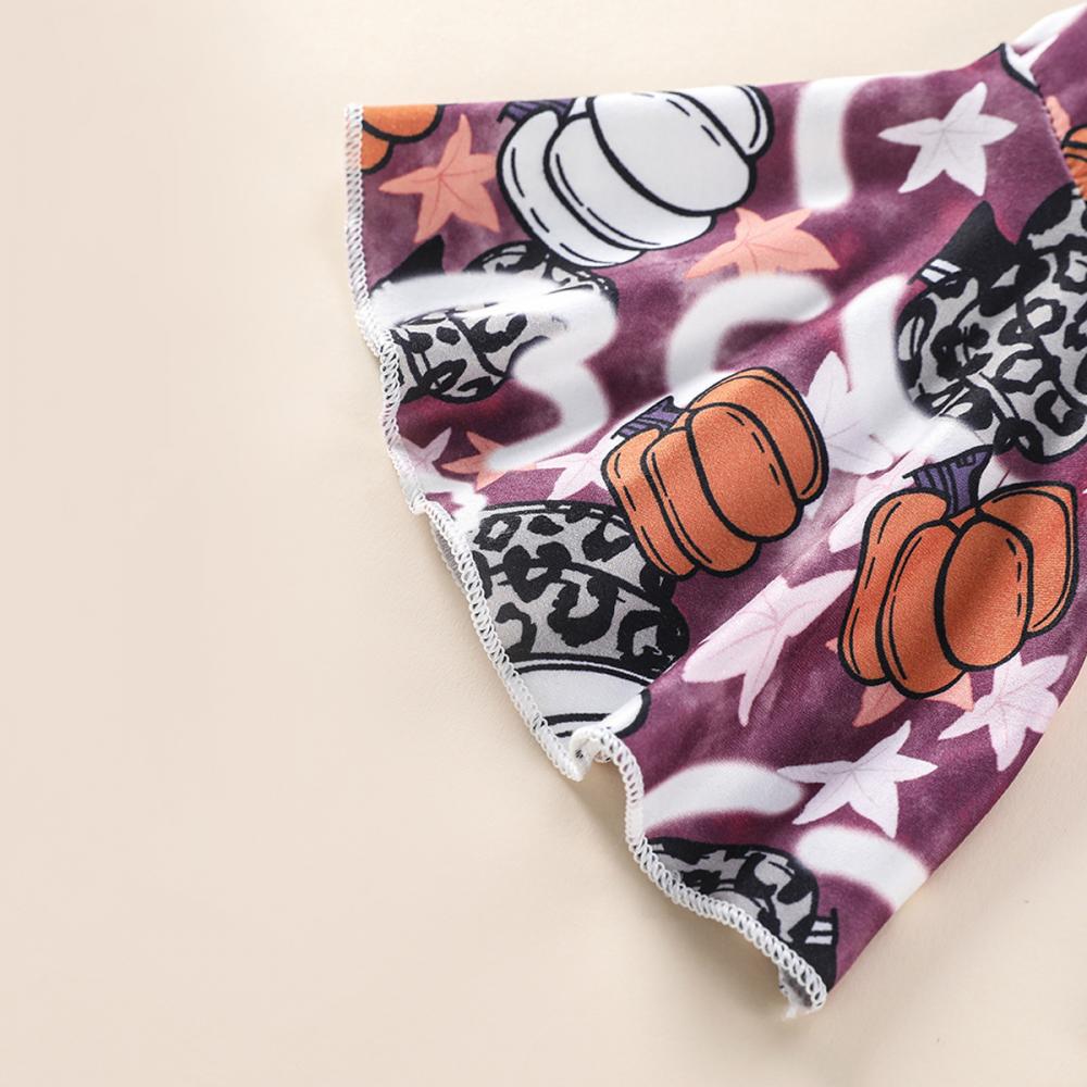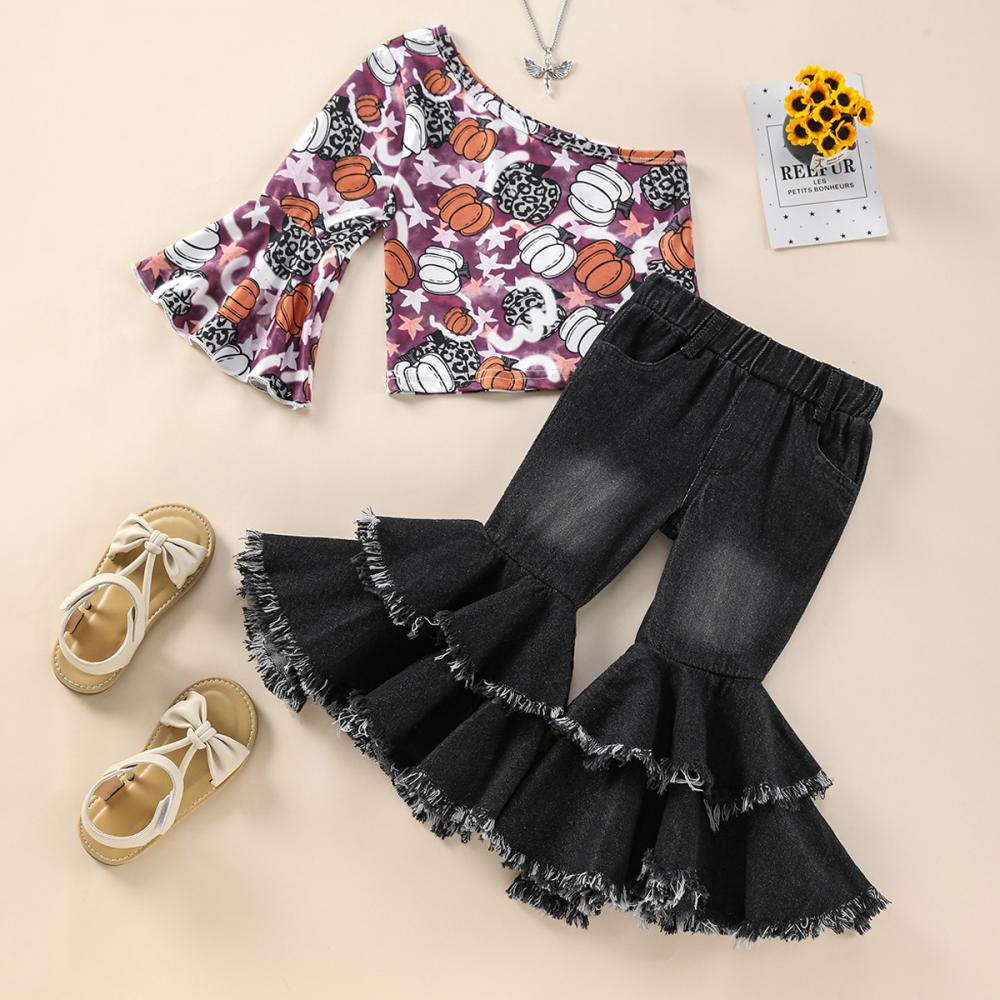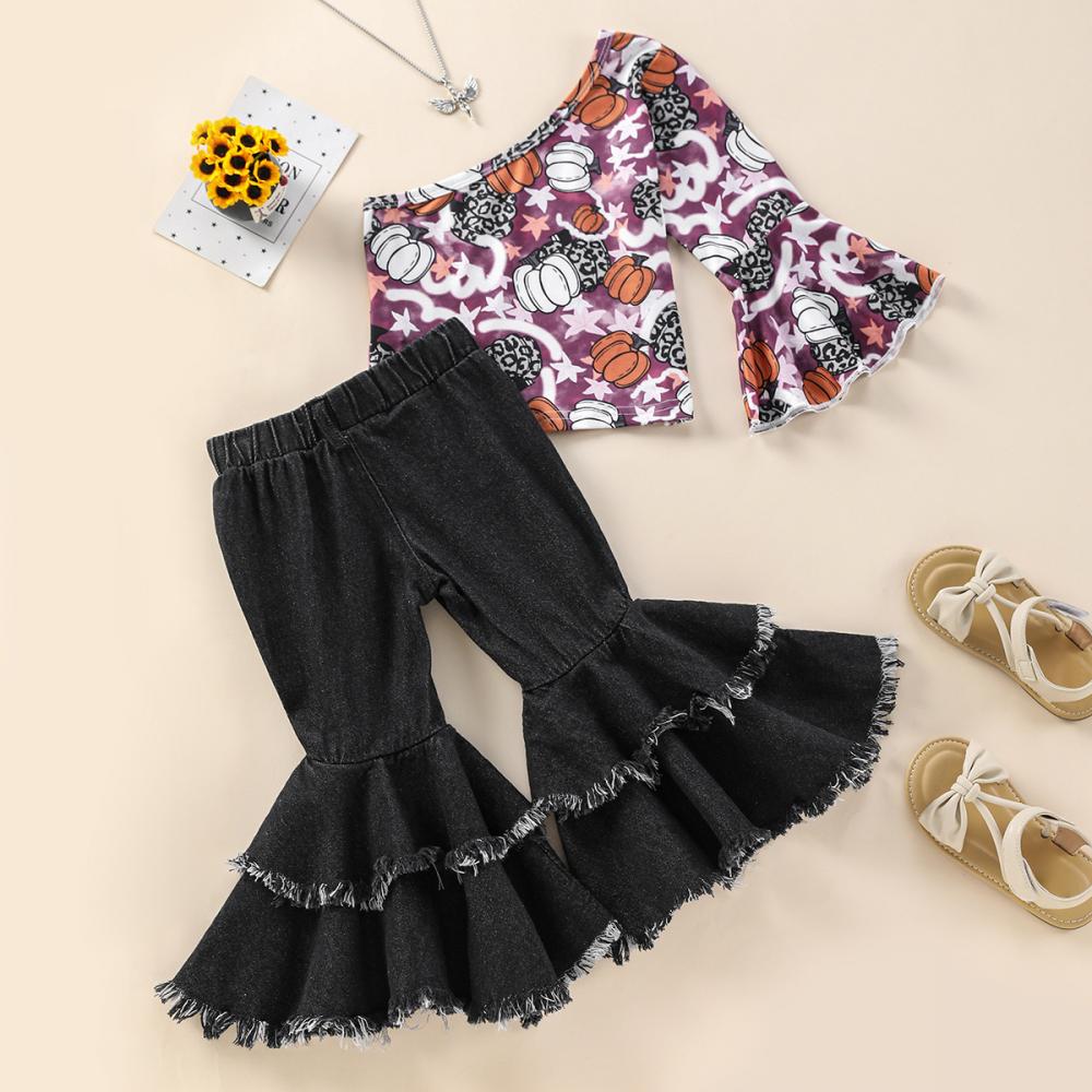 Girls' Slanted Shoulder Printed Top + Black Double-layer Flared Pants Suit Wholesale Girls Clothes