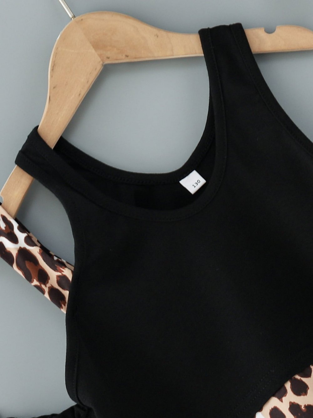 Girls Spring and Autumn Off-the-shoulder Long-sleeved Top Leopard Print Flared Pants Suit Wholesale