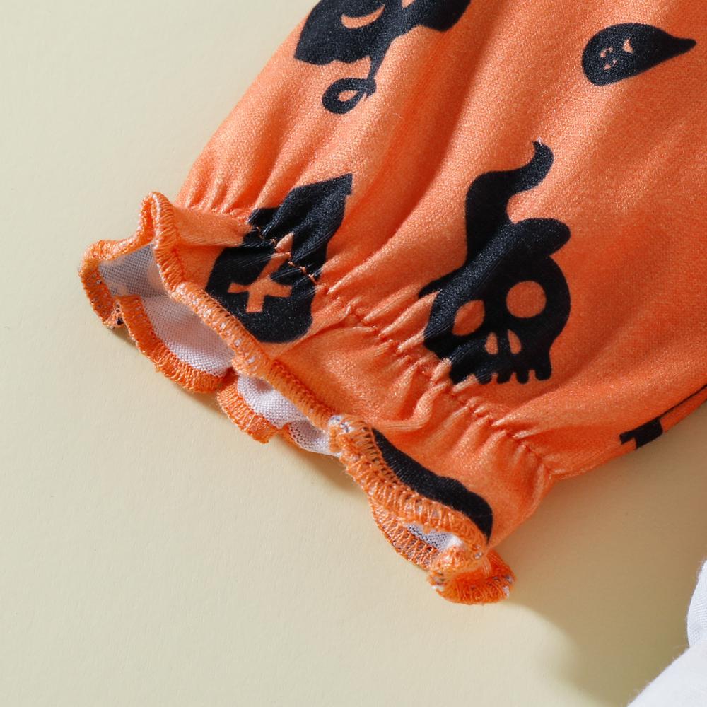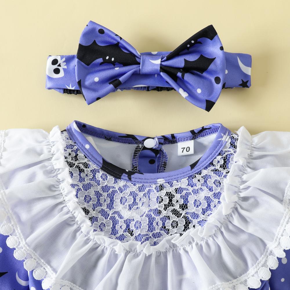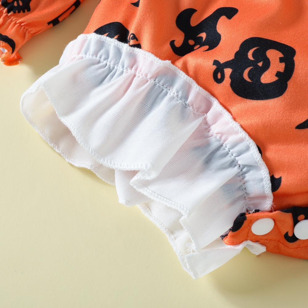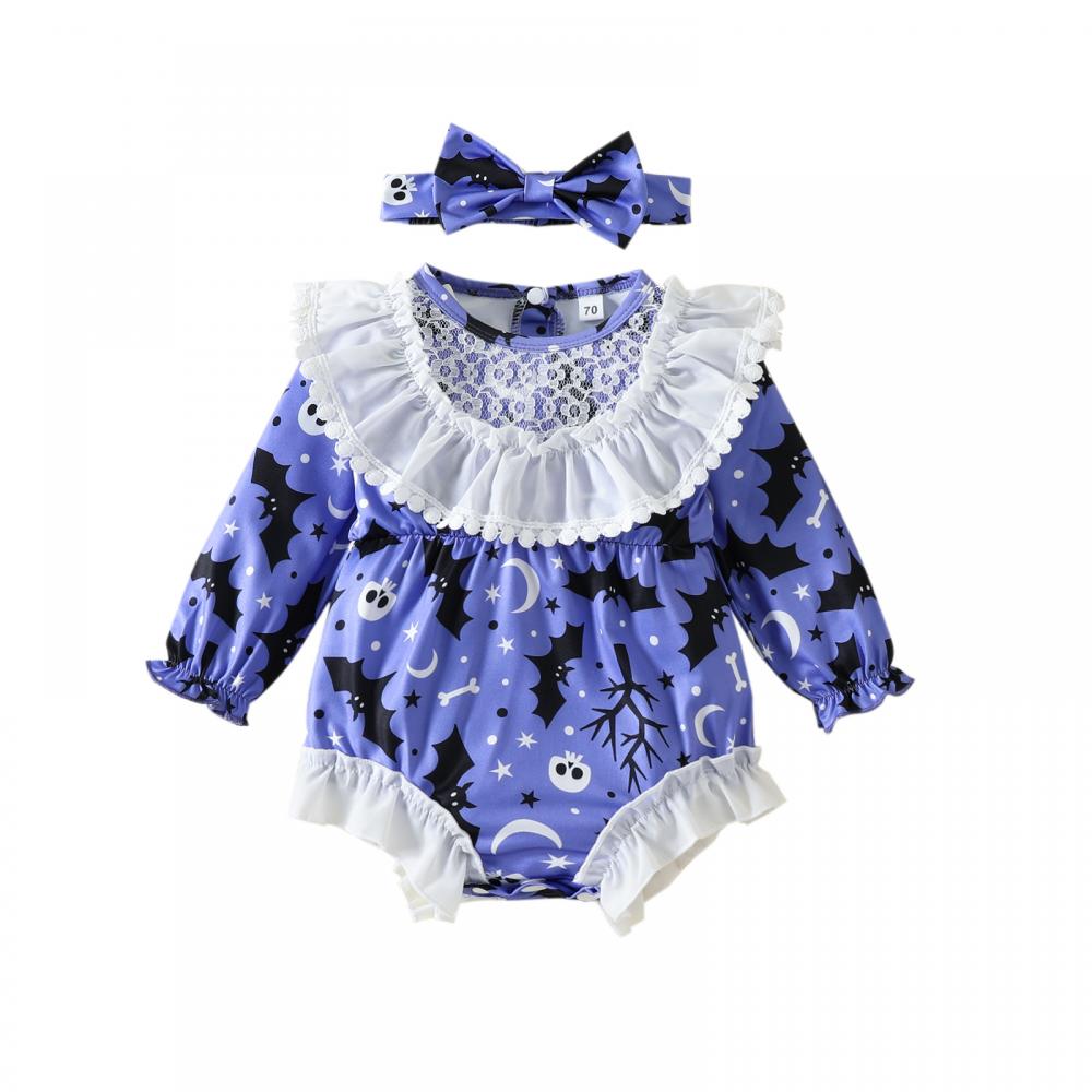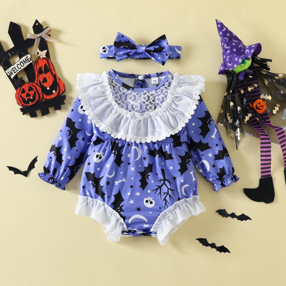Halloween Baby Girl Autumn Cartoon Print Romper + Hairband Wholesale Girls Clothes