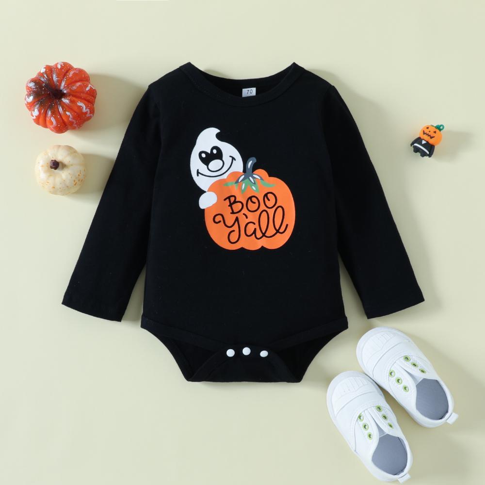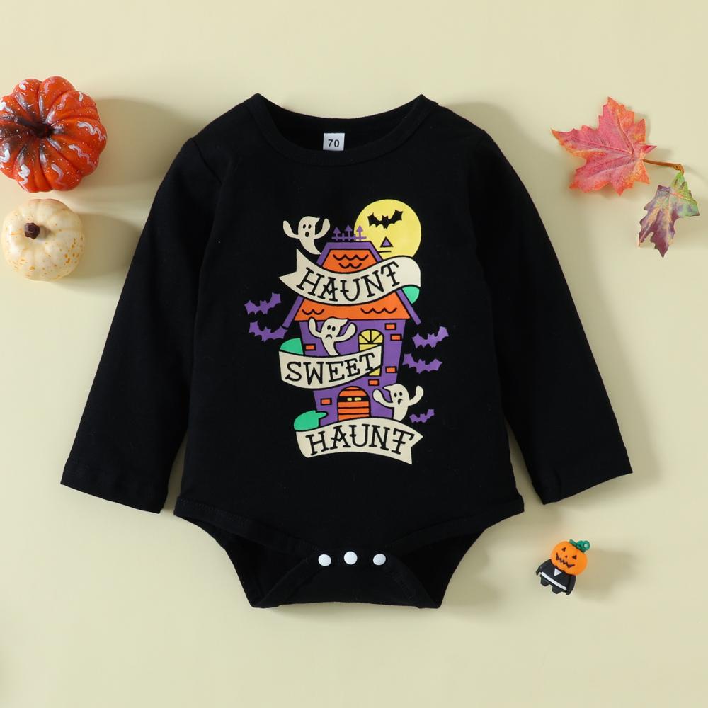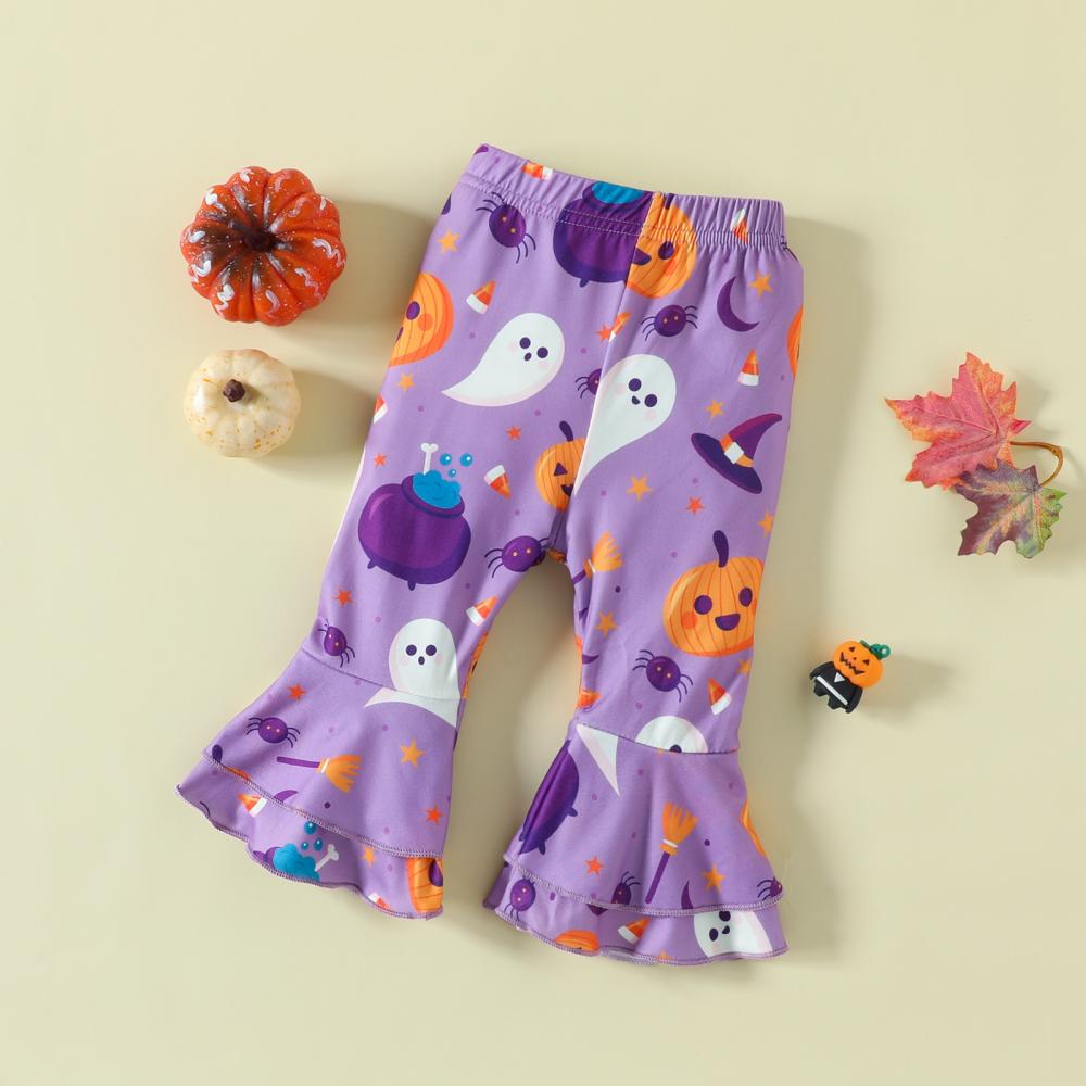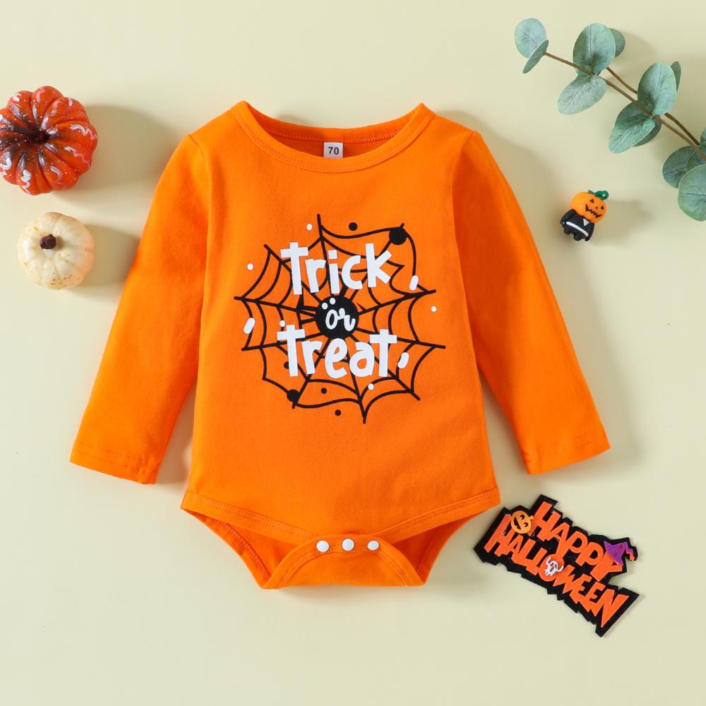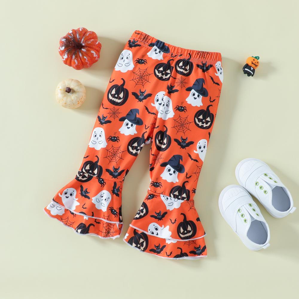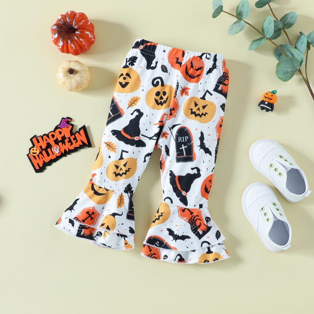 Halloween Infants and Toddlers Cartoon Print Romper Flared Pants Headband Three-piece Set Wholesale Baby Clothes