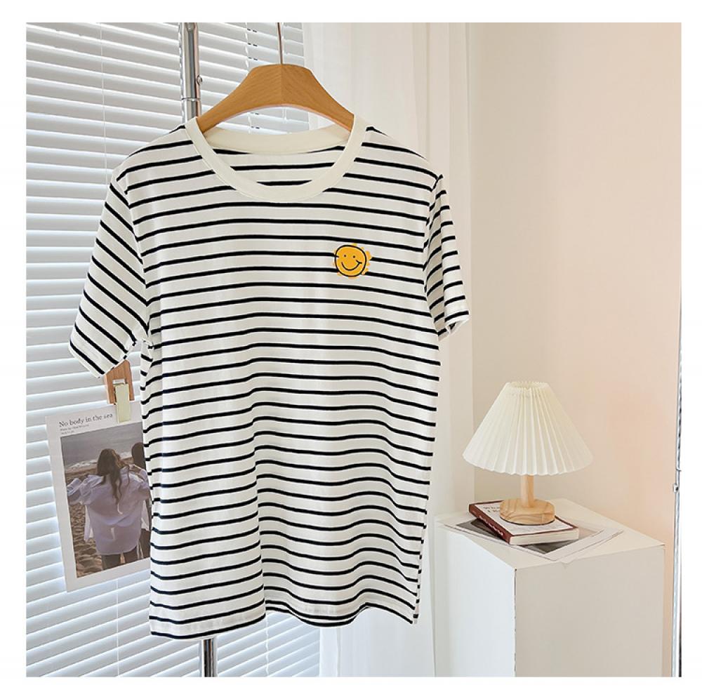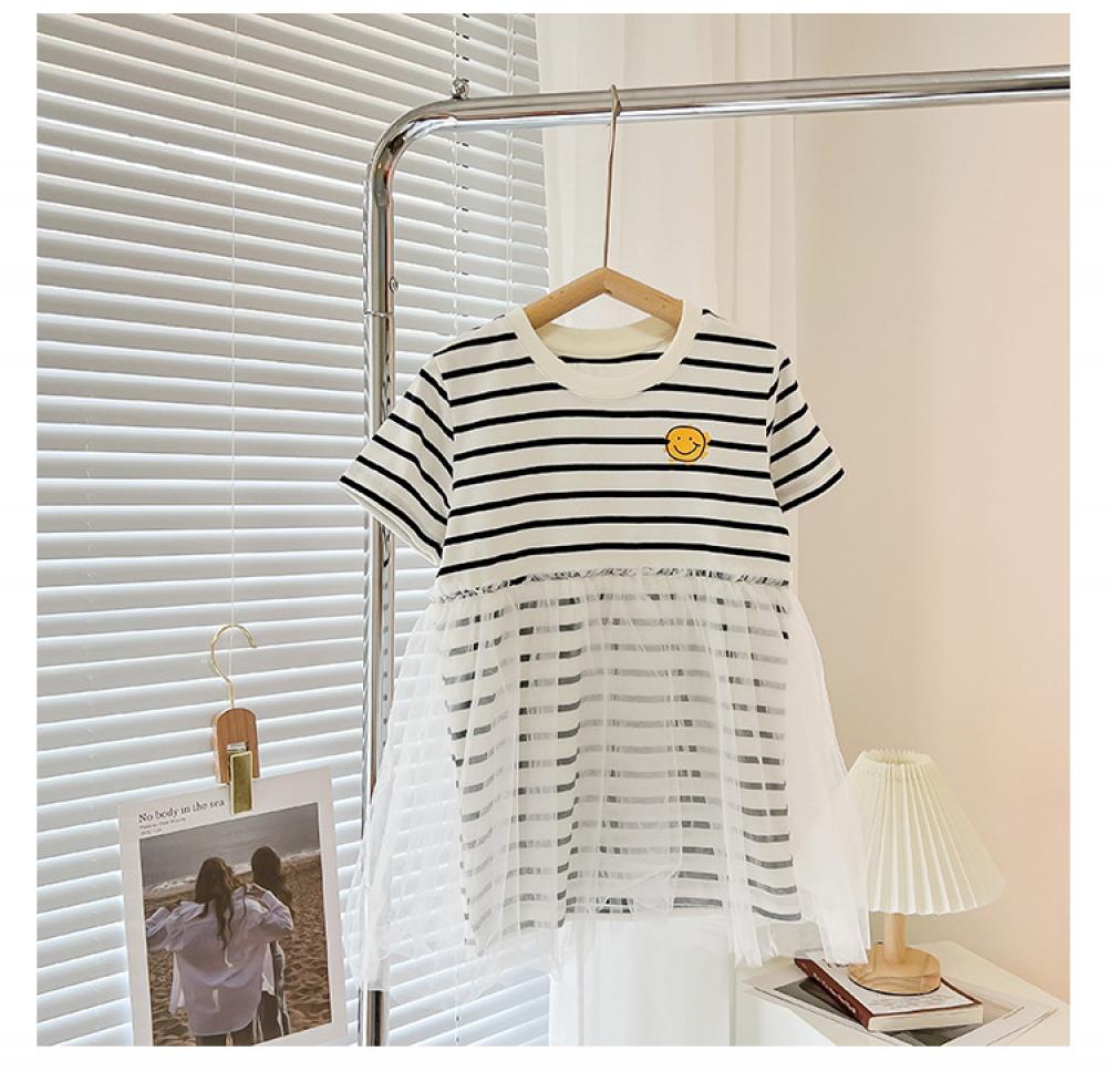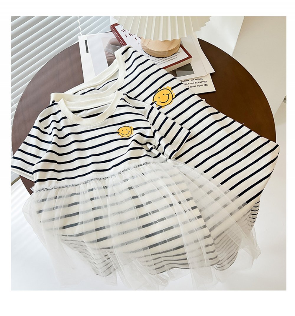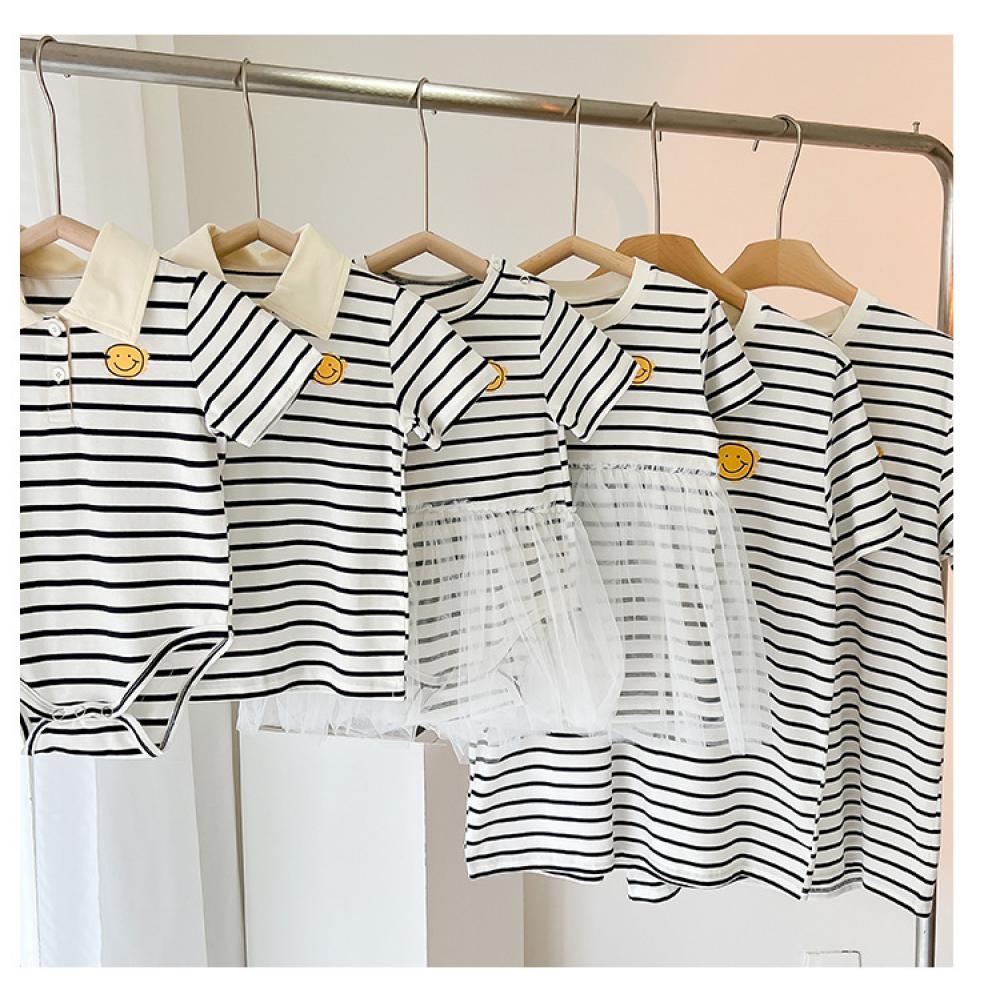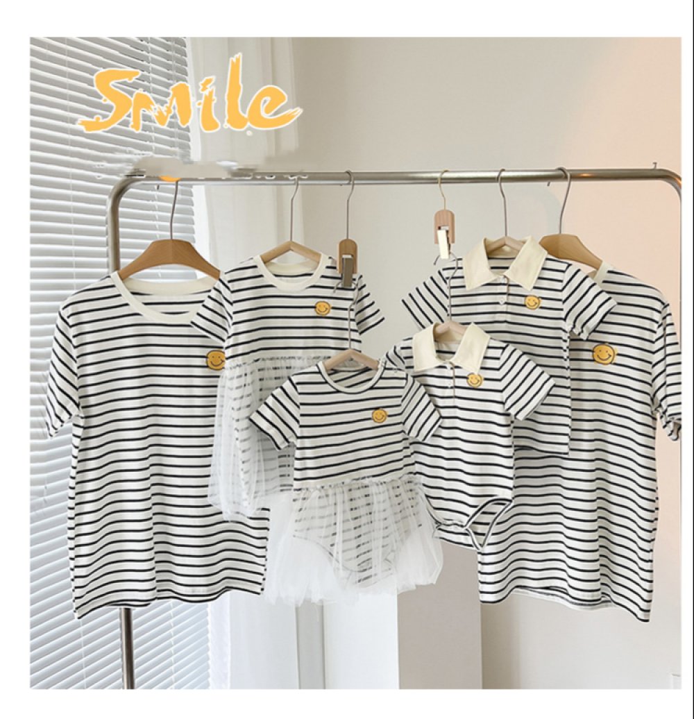 Parent-child Summer Stripe and Smiley Mommy And Me Matching Outfits Wholesale